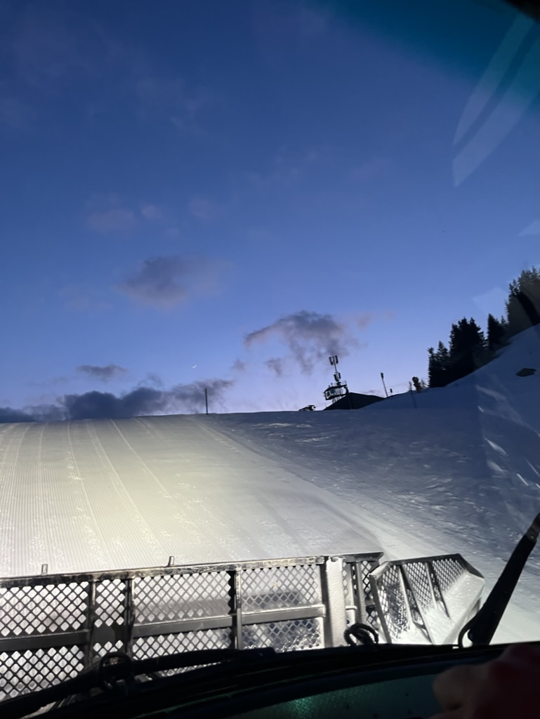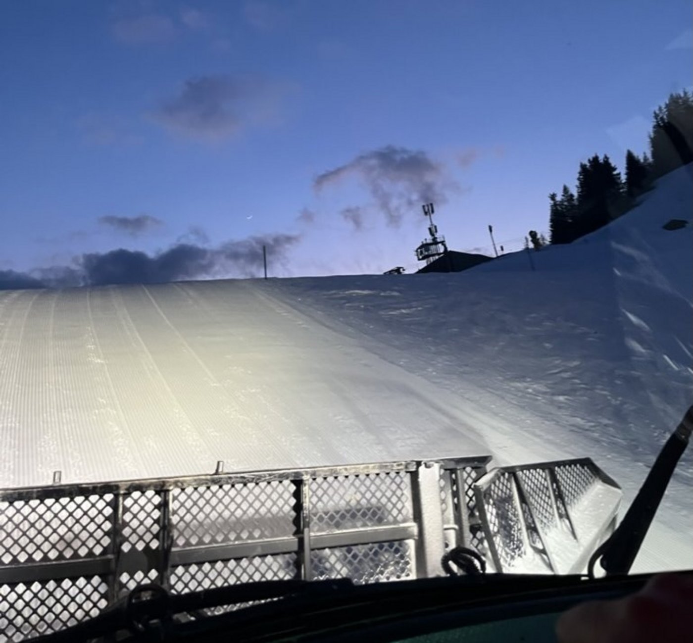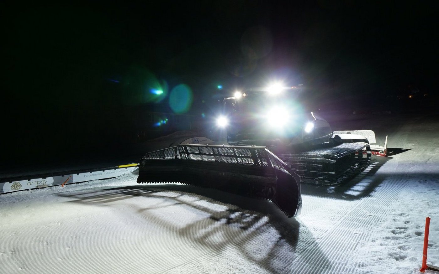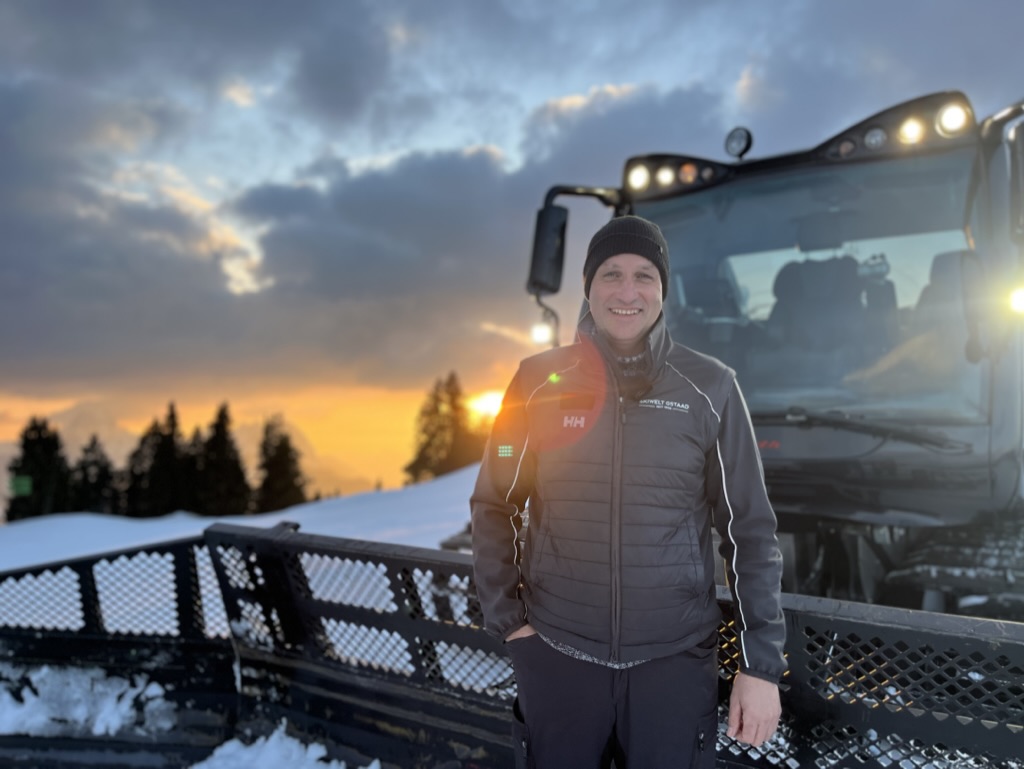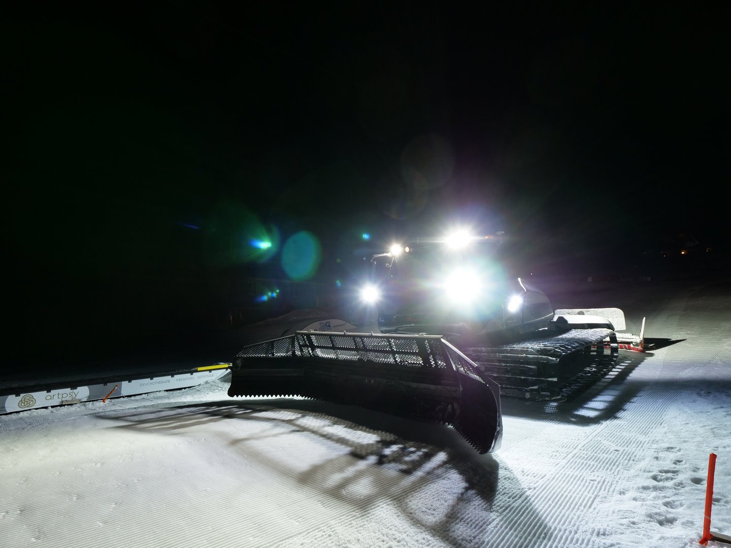 Und das kann dauern. Nicht selten dreht er den Schlüssel zur 500-PS-Maschine erst um 5 Uhr morgens wieder um. Wenn in der Nacht Schnee fällt, kann die Schicht auch erst um 3 Uhr morgens beginnen, weil die Skigebiet-Betreiber möglichst viel Schnee anhäufen lassen wollen, bevor sich die Kässbohrer-Pistenbullys und Prinoth-Pistenfahrzeuge an die Arbeit machen.