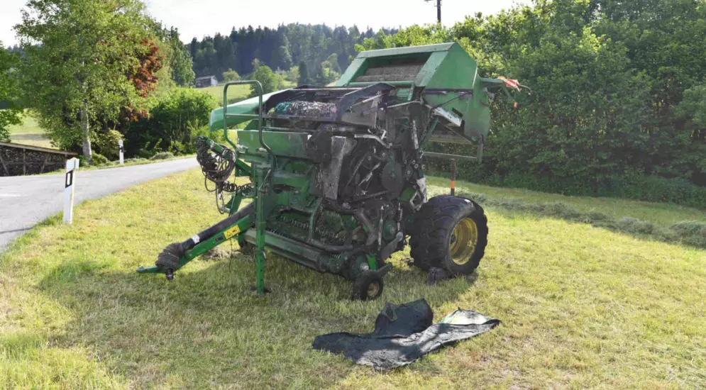 Es sei dem 67-Jährigen gelungen, die brennende Ballenpresse von nahen Häusern zu entfernen und den Anhänger auf einer Wiese vom Traktor abzukoppeln.
