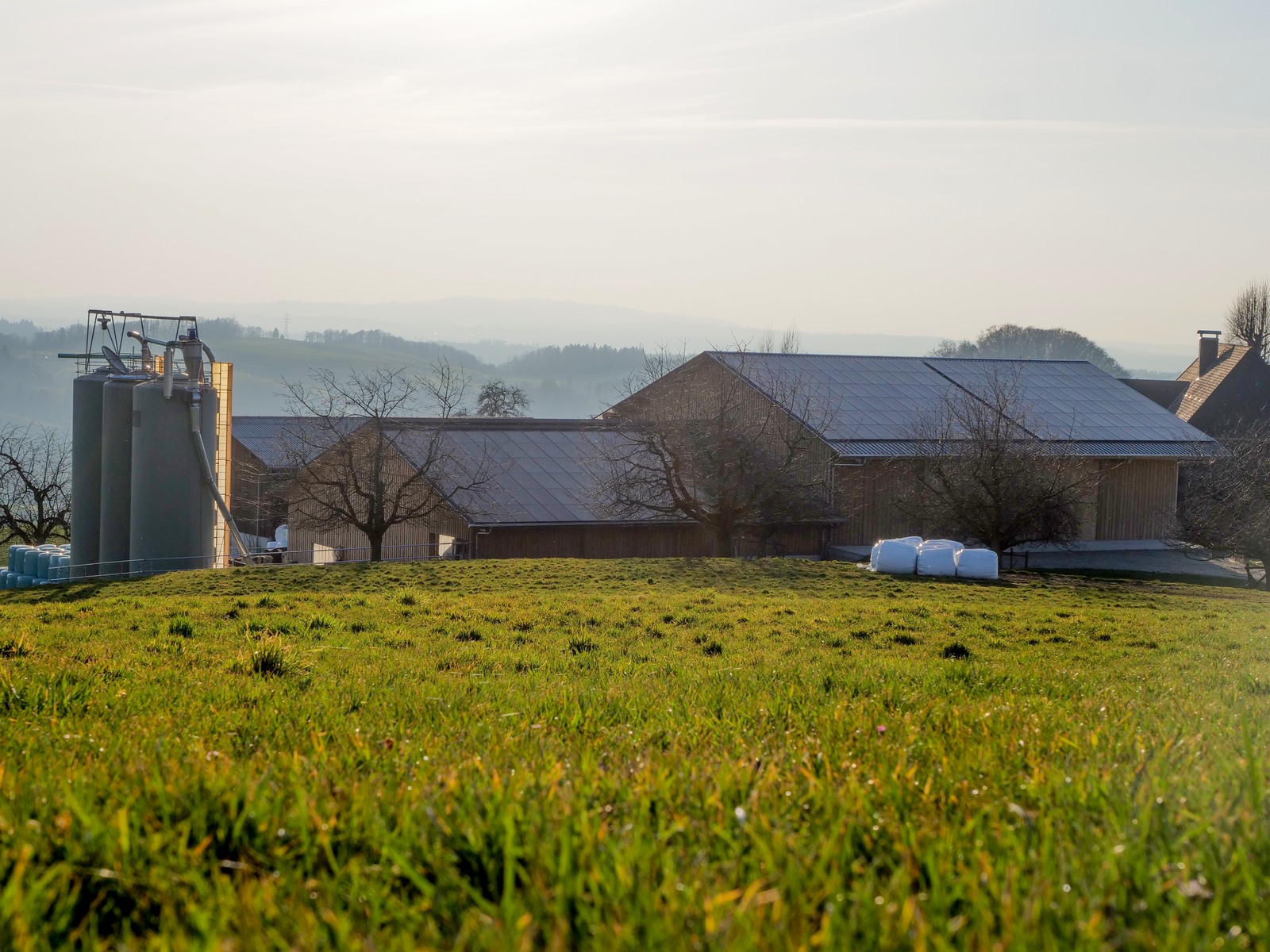 Photovoltaik: Dachleistung von 236kWp, Wechselrichterleistung von 200kW; so kann ein grosser Teil der auf dem Hof benötigten Energie selbst produziert werden