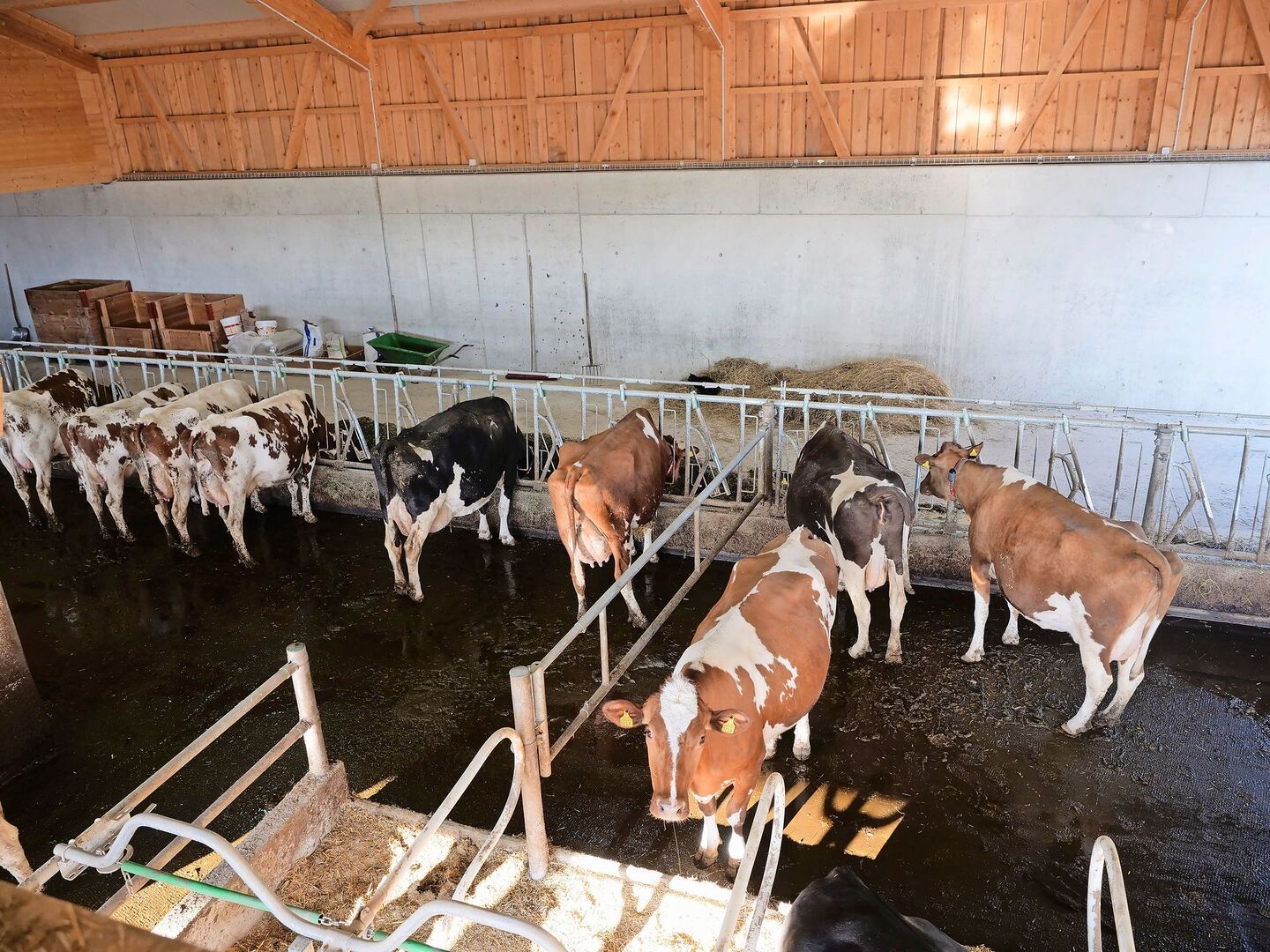 Als der Neubau vor einem Jahr einzugsbereit wurde, gewöhnte man die Kühe langsam an ihn. Der Startschuss fiel an einem Freitagmorgen im März 2024. Während den ersten drei Tagen wurden die Kühe noch im Anbindestall gemolken, verbrachten aber den ganzen Tag in ihrem neuen Zuhause und konnten dort die Liegeboxen, den Laufhof und auch den Futtertisch austesten. «Es war eigentlich wie bei der Vollweide, wo man die Tiere nur zum Melken in den Stall nimmt», erklärt Michael Stalder.