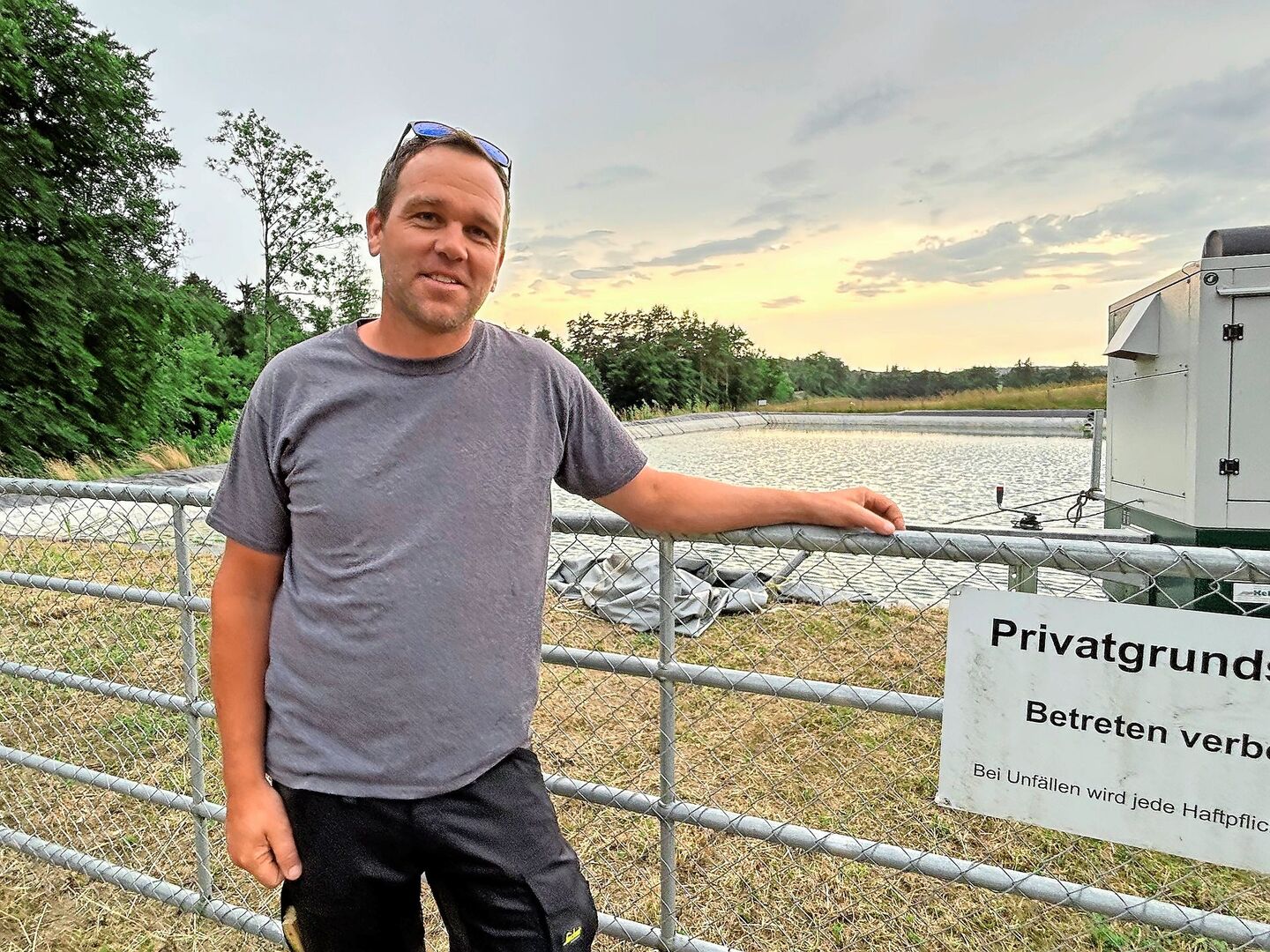 2020 machte Schiess die Baueingabe und seit 2021 steht sein Speicherbecken. Es ist 7 m tief, Länge und Breite betragen 50 auf 30 m. Die 8000 m3 Wasser reichen, um etwa 10 ha zu bewässern. Gekostet hat das Becken Fr. 100 000, rund 26 000 Franken allein für die Folie zur Teichabdichtung. Auch hat er nun eine Konzession, um aus dem nahegelegenen Bach Wasser zu beziehen, wenn dieser viel Wasser führt. Das Handling der Pumpe und die Bewässerung funktionieren via Handy. Eine grosse Erleichterung für Pascal Schiess, denn sein Stammbetrieb befindet sich in Homburg.