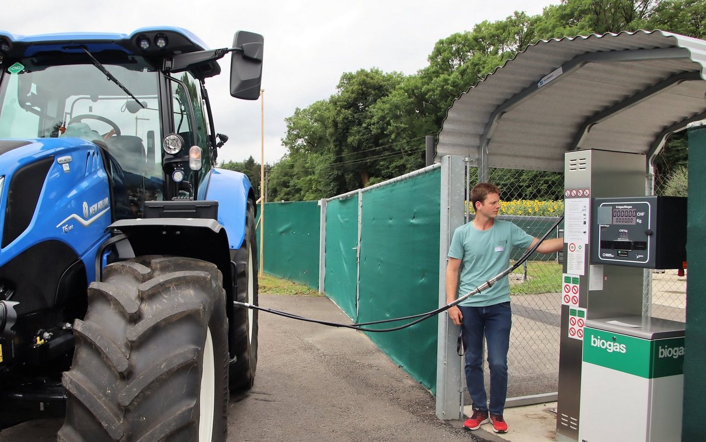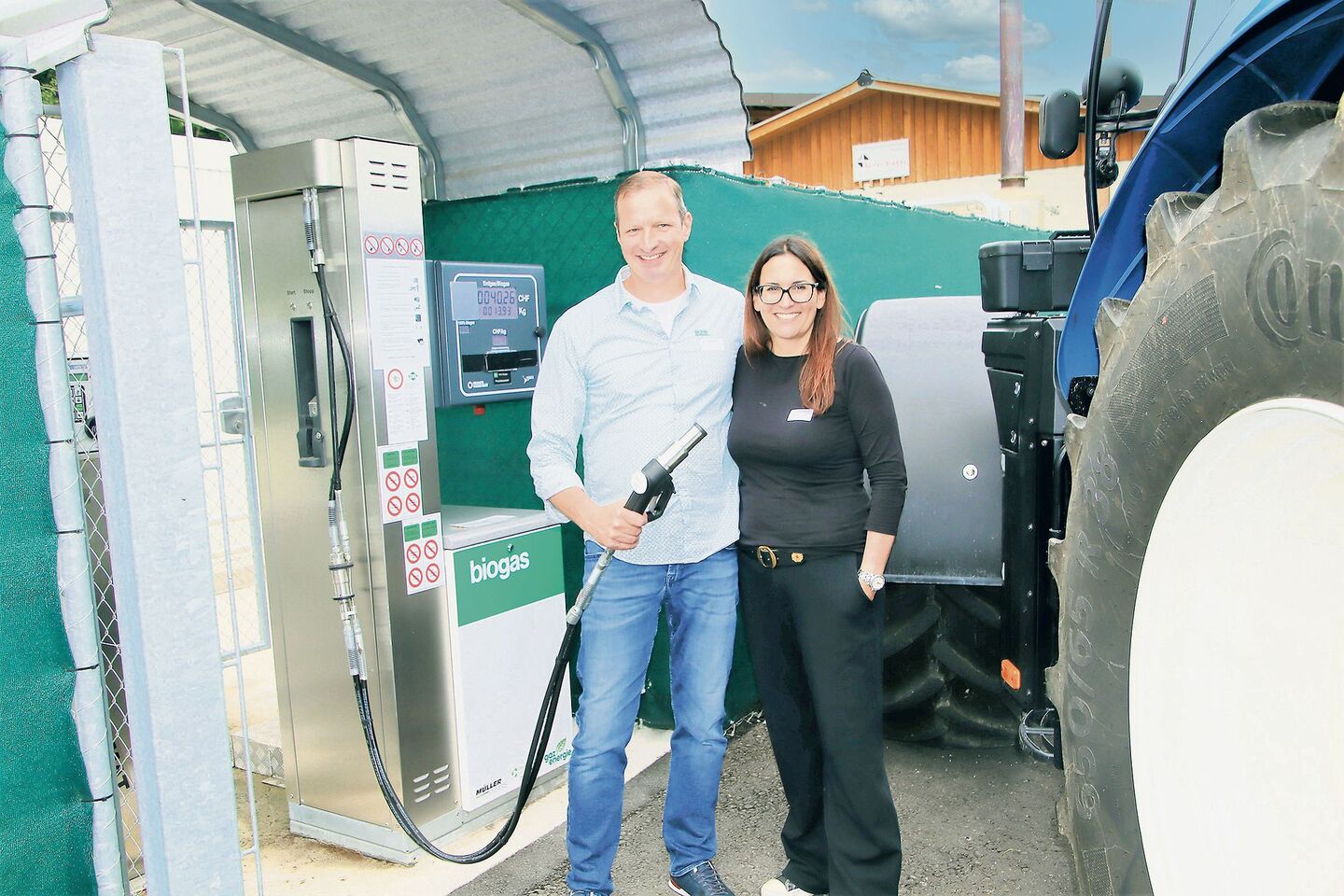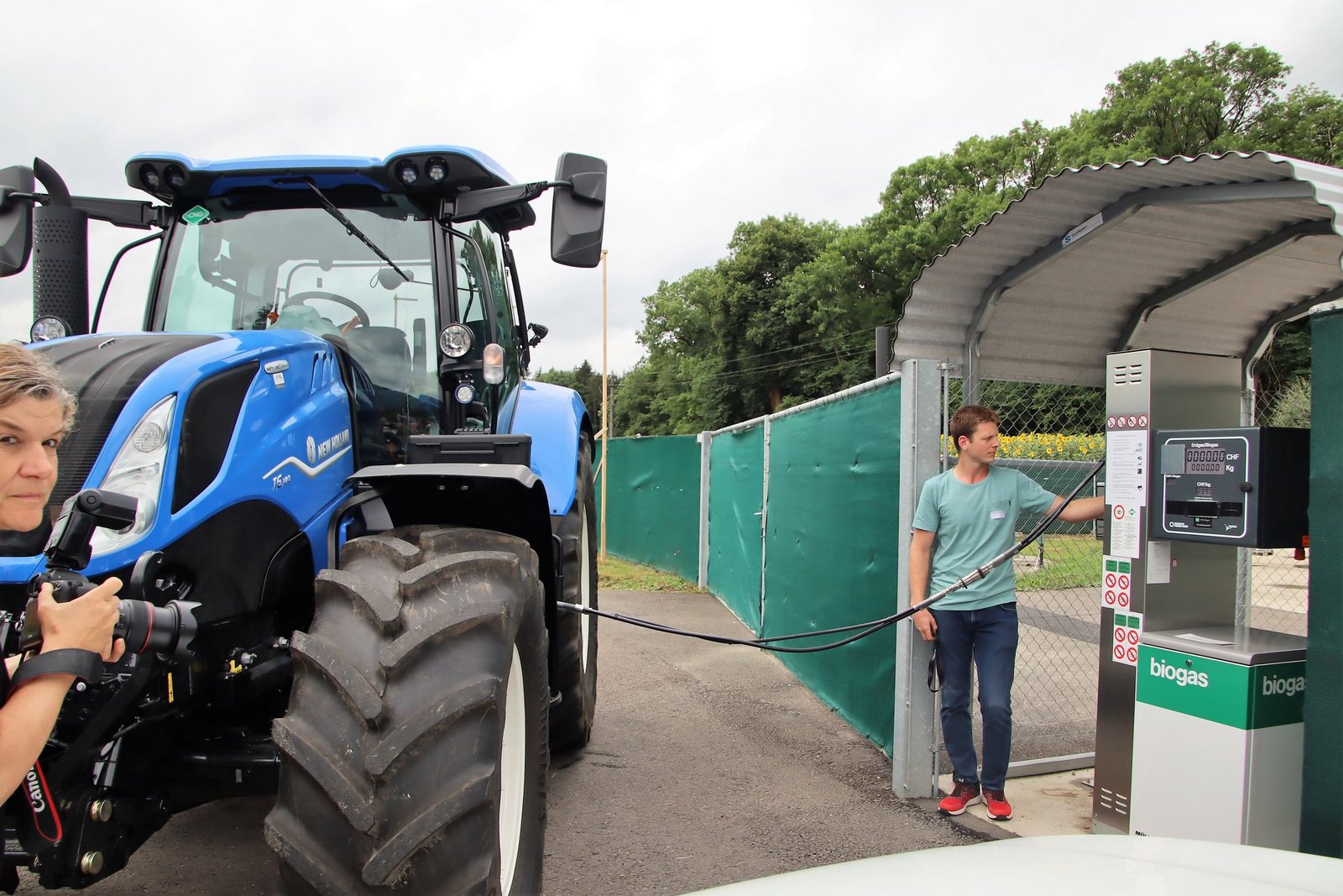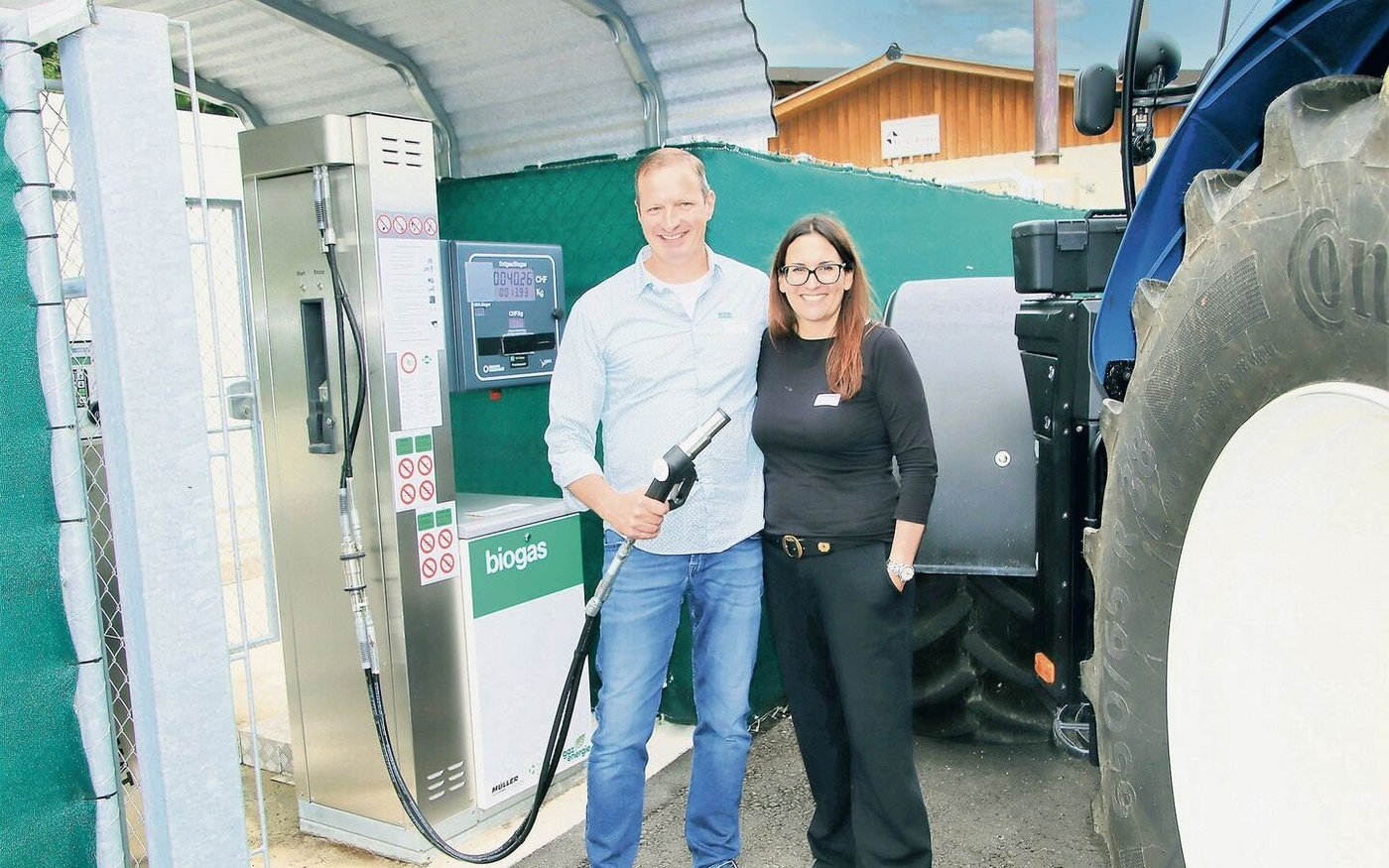 Auf dem Hof «Unterbuck» von Andrea und Christian Müller im schaffhausischen Thayngen ist die Vision eines geschlossenen Kreislaufs erfüllt worden. Sie haben die erste Biogastankstelle auf einem Bauernhof in Betrieb genommen, wo der erste eigene Traktor mit eigenem Gas betankt wird.