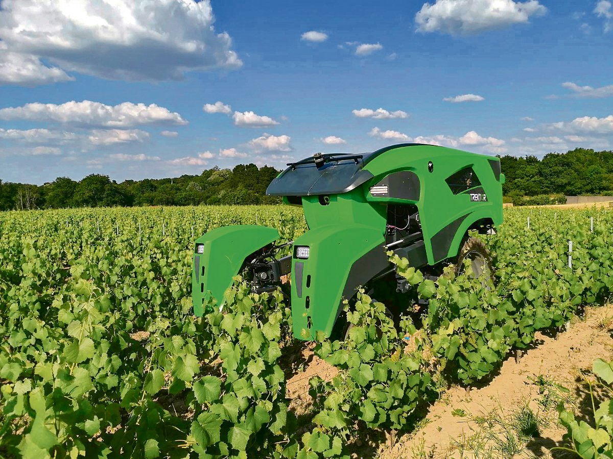 Die französische Firma Naïo ist ein alter Hase im Agrarroboter-Geschäft. Ihr Roboter Ted vernichtet mechanisch das Unkraut zwischen den Rebstöcken. «Ted» steuert mit Real-Time-Kinematic-GPS (RTK-GPS) autonom durch die Rebberge. Der Roboter hat einen Allradantrieb und wiegt 900 kg.