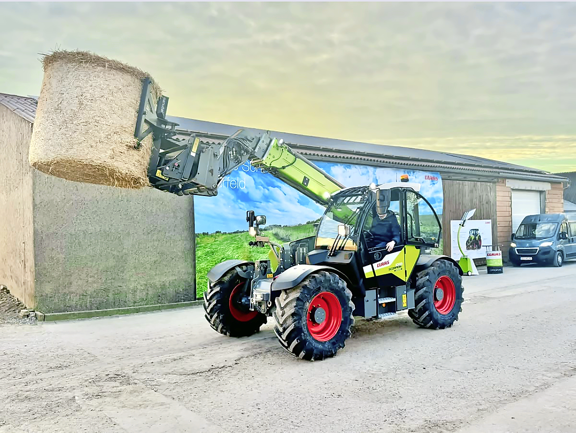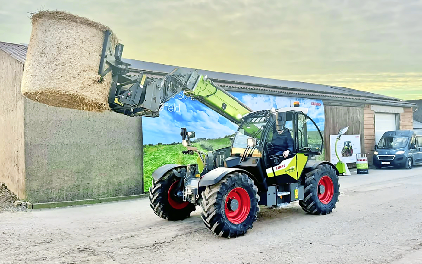 Aber es gibt bei Claas auch Positives zu berichten: So haben die Teleskoplader Scorpion für das Baujahr 2025 diverse Neuerungen erfahren. Neu besitzt der Scorpion 1033 einen zweiteiligen Teleskoparm für eine Hubhöhe von zehn Metern. Hingegen dürfte der Scorpion 742 mit sieben Metern Hubhöhe und 4,2 Tonnen Tragkraft der Topseller in der kleinen Baureihe sein. Die neue Lenksäule, der jetzt auf der Armlehne integrierte Bedienhebel oder auch die Halterung für Schaufel und Besen sind Detailverbesserungen, die einem sofort ins Auge springen. Weitere Neuerungen sind die um 20 Prozent höhere Zugkraft, der automatische Teleskop-Einzug sowie die Feineinstellung der Arbeitshydraulik.