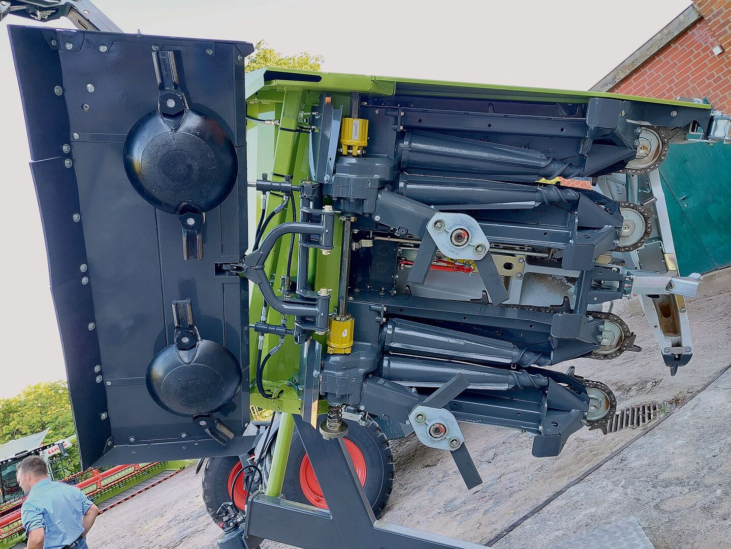 Die Rotoren passen sich den Bodenbegebenheiten an, dank der Dreipunktaufhängung von je zwei Rotoren am Rahmen. Durch den Stoppelzerstörer kommt es bei einem achtreihigen Maispflückerbalken zu rund 400 kg Zusatzgewicht.