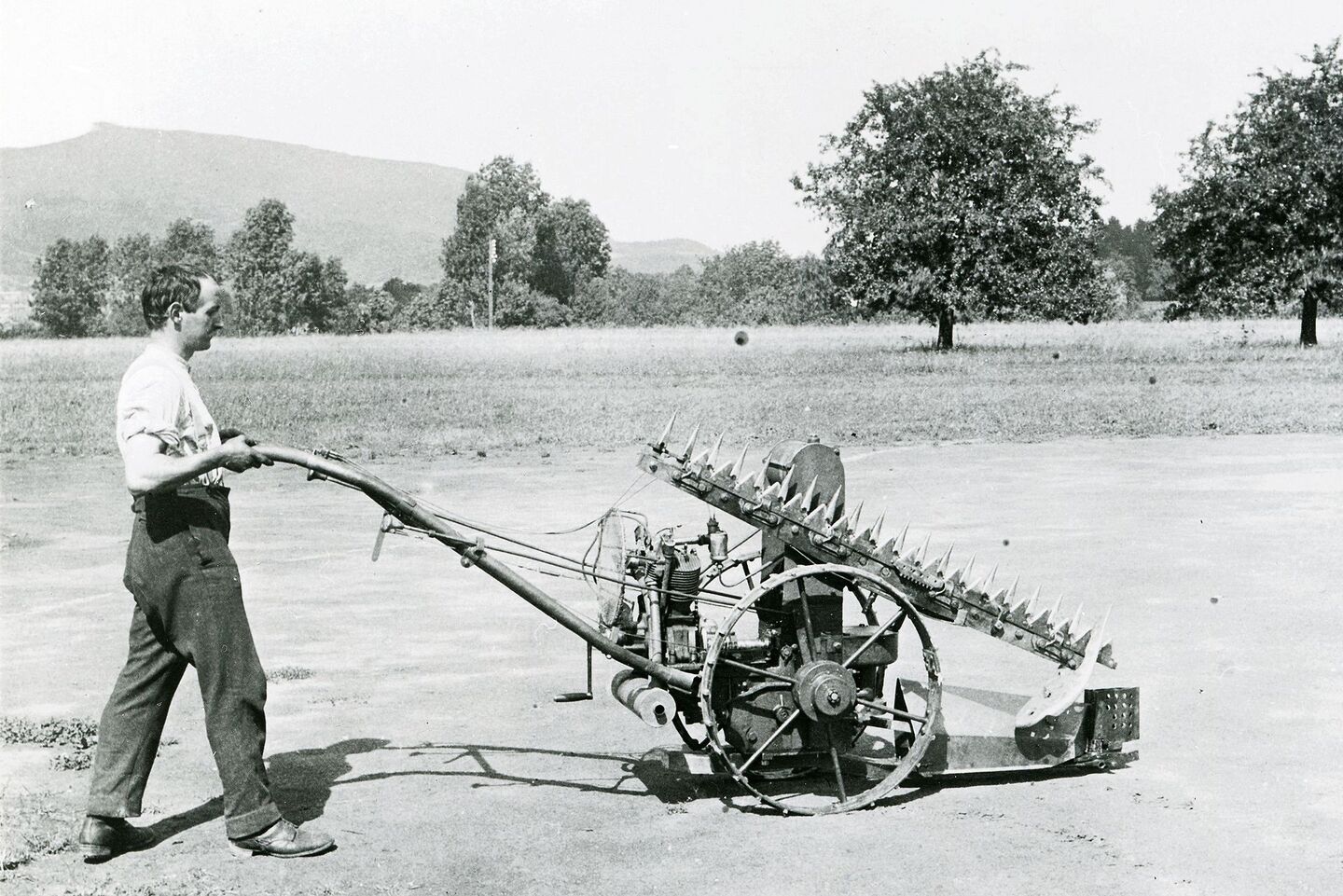 Der Bauernsohn Jakob Fahrni hatte den naheliegenden Einfall, Pferdestärken durch einen der zu diesem Zeitpunkt immer zuverlässiger werdenden Motoren zu ersetzen. Seine wesentlichste Erfindung war aber der Mähbalken – wie wir ihn heute kennen: Mit den spitzen Stahlfingern und dem hin und her ruckelnden, dreieckigen Klingen am Messerhalter. Die liessen sich bei Bedarf auch recht einfach auswechseln.