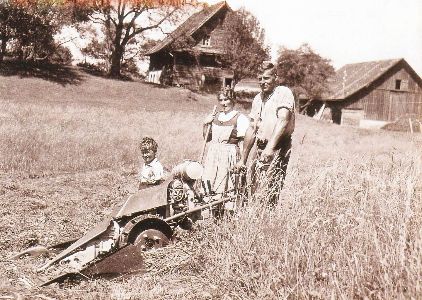 Die Idee lag – sozusagen – schon in der Luft. Bereits in den 1820er- und 1830er-Jahren hatten in Schottland und in den USA Tüftler mit Gerätschaften experimentiert, die das Mähen leichter machen sollten. Sie funktionierten nach dem Scherenprinzip. Es waren Karren, an denen vorn Messerschienen angebracht waren: Zwei, die sich gegeneinander bewegten und damit beim Vorwärtsfahren alles abschnitten, was sich ihnen in den Weg stellte. Nur: für diese Vorwärtsbewegung benötigte man Zugtiere wie Pferde, Ochsen oder Kühe. Die amerikanische McCormick-Mähmaschine wurde 1831 nach diesem Prinzip auf den Markt gebracht. Die von Tieren gezogene Mähmaschine fand auch in Europa Verbreitung. Die erste serienmässige Fabrikation in der Schweiz wurde 1895 durch die Maschinenfabrik Aebi AG in Burgdorf aufgenommen. Für die Bauern bedeutete das mechanische Mähen schon eine grosse Arbeitserleichterung. Anstatt mit Sichel oder Sense ins Feld zu ziehen, konnten sie nun auf einem Gefährt sitzend mähen.