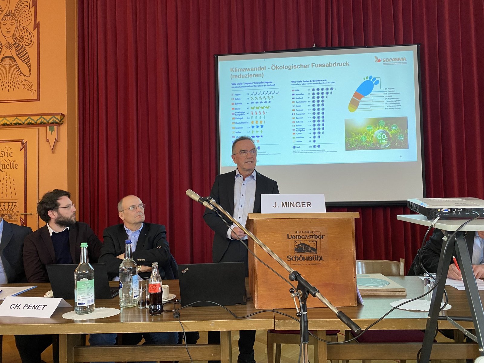 Vor der eigentlichen GV hielt Verbandspräsident Jürg Minger ein umfassendes Referat. Mit Weitblick schaute er hinaus in die Welt und zeigte auf, mit welchen Herausforderungen die Landtechnik-Branche aktuell konfrontiert ist. Dabei streifte er das Klima – «die Uhr tickt» – und sprach die Probleme an, welche die immer extremeren Wetterereignisse bereits jetzt bereiten.