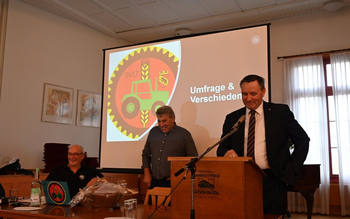 Auch Peter Gerber blickte auf 29 Jahre Geschäftsführertätigkeit zurück. Besonders sein letztes Amtsjahr sei schwierig gewesen. Da waren etwa die Probleme mit dem elektronischen Messgerät bei den Spritzentest. Aber auch das Mitgliederinkasso verursachte einen Mehraufwand. Der verwendete QR-Code bei den Rechnungen funktionierte nicht, dies auch nach dem zweiten Versand nicht. Dafür entschuldigte sich Peter Gerber bei den Mitgliedern in aller Form. «Mein letztes Jahr als Geschäftführer hat mich sehr gefordert», resümierte er denn auch. Bei der Ehrung zur Arbeit von Peter Gerber erklärte Klaus Brenzikofer: « Es war nicht schwer, neben Peter Präsident zu sein.» Stets habe dieser immer alles top organisiert gehabt. Die Ehrung von Klaus Brezikofer, der seit 1994 dem BVLT-Vorstand angehörte und 2006 zum Präsidenten gewählt wurde, übernahm der neue Präsident Urs Schneeberger. «Klaus Brezikofer war immer aufgestellt, fröhlich, witzig - einfach eine gmögige Person», betonte Schneeberger. Er habe ein hohes Level als Nachfolger von Brenzikofer vor sich, das sei er sich bewusst. Sowohl Klaus Brenzikofer wie auch Peter Gerber wurden als Ehrenmitglieder des BVLT ernannt. [IMG 3]