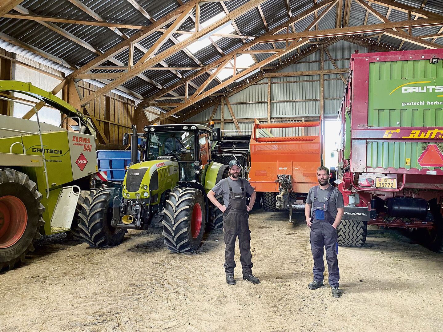 Bei den Traktoren setzen Gautschis hingegen ganz klar auf eine Marke, nämlich Claas. So finden sich in ihrem Fuhrpark vier neue Claas-Arion-Modelle. Einer der Traktoren steht unweit des Betriebs im Einsatz; einer der Lehrlinge ist mit Meliorationsarbeiten für die Gemeinde beschäftigt und hat dazu einen grossen Kipper angehängt. Mittlerweile seien die Claas-Traktoren in der Region Thal fast ein wenig zu einem Markenzeichen ihres Lohnunternehmens geworden, scherzen die Brüder.