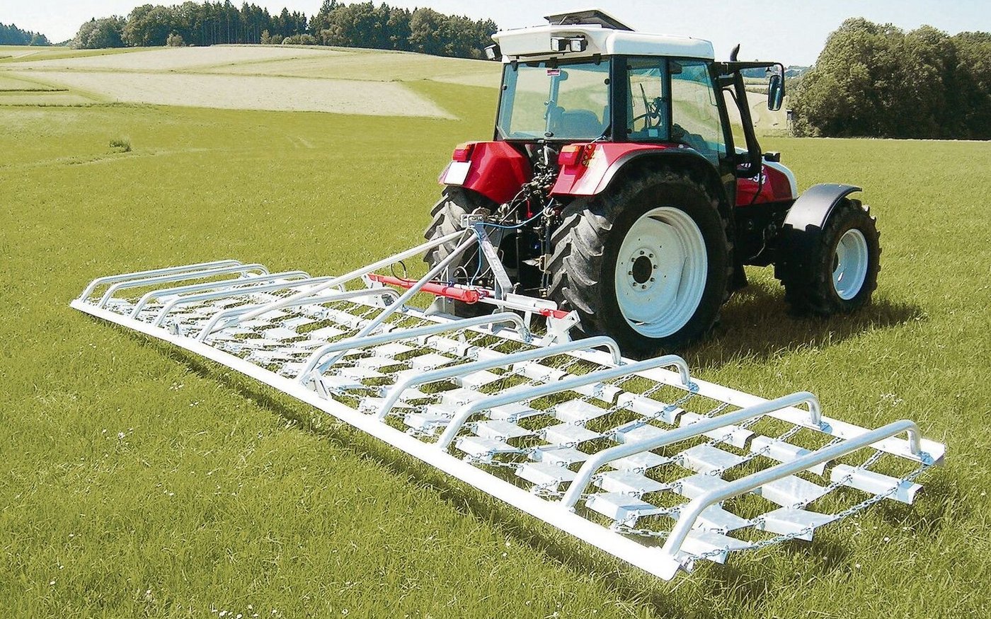 Ein entscheidender Faktor bei der Pflege eines hochwertigen Grünlandbestandes ist die richtige Bodenbearbeitung. Da gilt es, Maulwurfshaufen einzuebnen, Reste von Strohmist oder abgedorrte Gründüngung zu zerkleinern, oder Verfilzungen, Moos und hartnäckige Unkräuter gründlich zu entfernen. Um das Graswachstum anzuregen, empfiehlt sich zudem ein schonendes, aber intensives Lüften der Grasnarbe. All diese Aufgaben lassen sich mit einer Wiesenegge angehen.