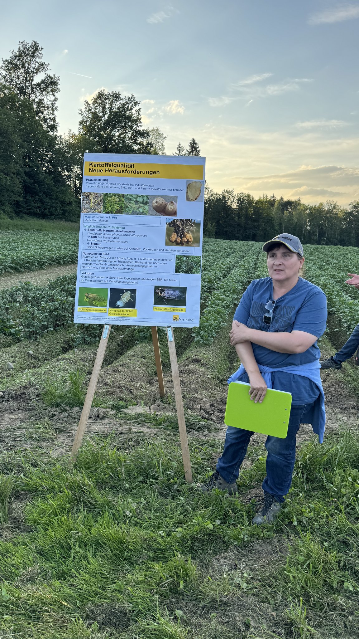 Anschliessend überraschten Höneisen und Tobias Gelencsér die Landwirte noch mit der neuen violetten Kartoffelsorte Vitanoire vom Züchter Plantera. Diese sei festkochend und somit ein Novum für blauviolette Sorten, bei denen es bisher nur mehligkochende auf dem Markt gab. Auch verfüge sie über eine aussergewöhnliche Resistenz gegenüber Krautfäule. Abstriche verzeichne Vitanoire hingegen beim Ertrag, dieser sei nur durchschnittlich. Man darf gespannt sein, wie diese Sorte vom Markt aufgenommen wird.
