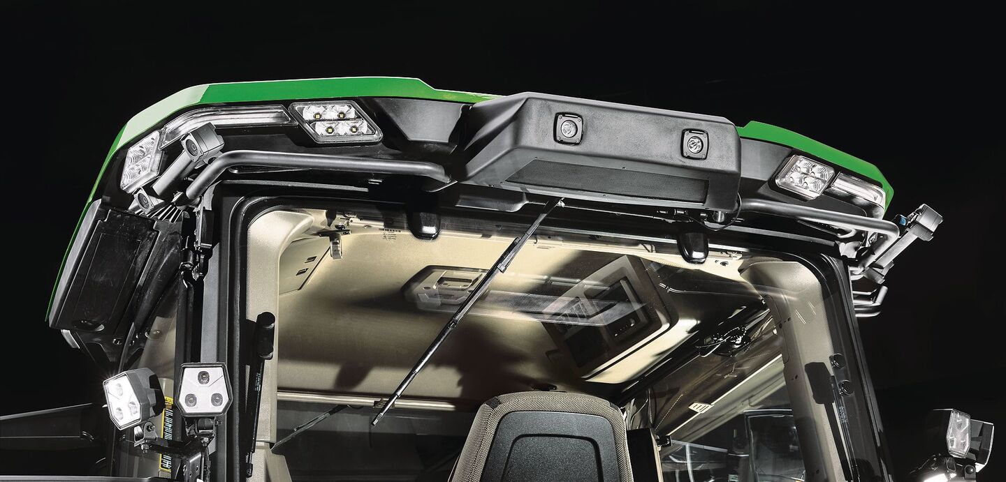 Der neue grün-gelbe Selbstfahrer basiert auf einem John Deere 8R, der mit einem neuen Lenksystem und Technologien zur präzisen Bodenbearbeitung versehen wurde. Sechs über den Traktor verteilte Stereokamera-Paare entdecken auch kleinste Hindernisse rund um die gesamte Maschine. Sie liefern ihre Bilder an den Bordcomputer, der die Distanzen auswertet und innert kürzester Zeit entscheidet, ob der Traktor anhalten oder weiterfahren soll.