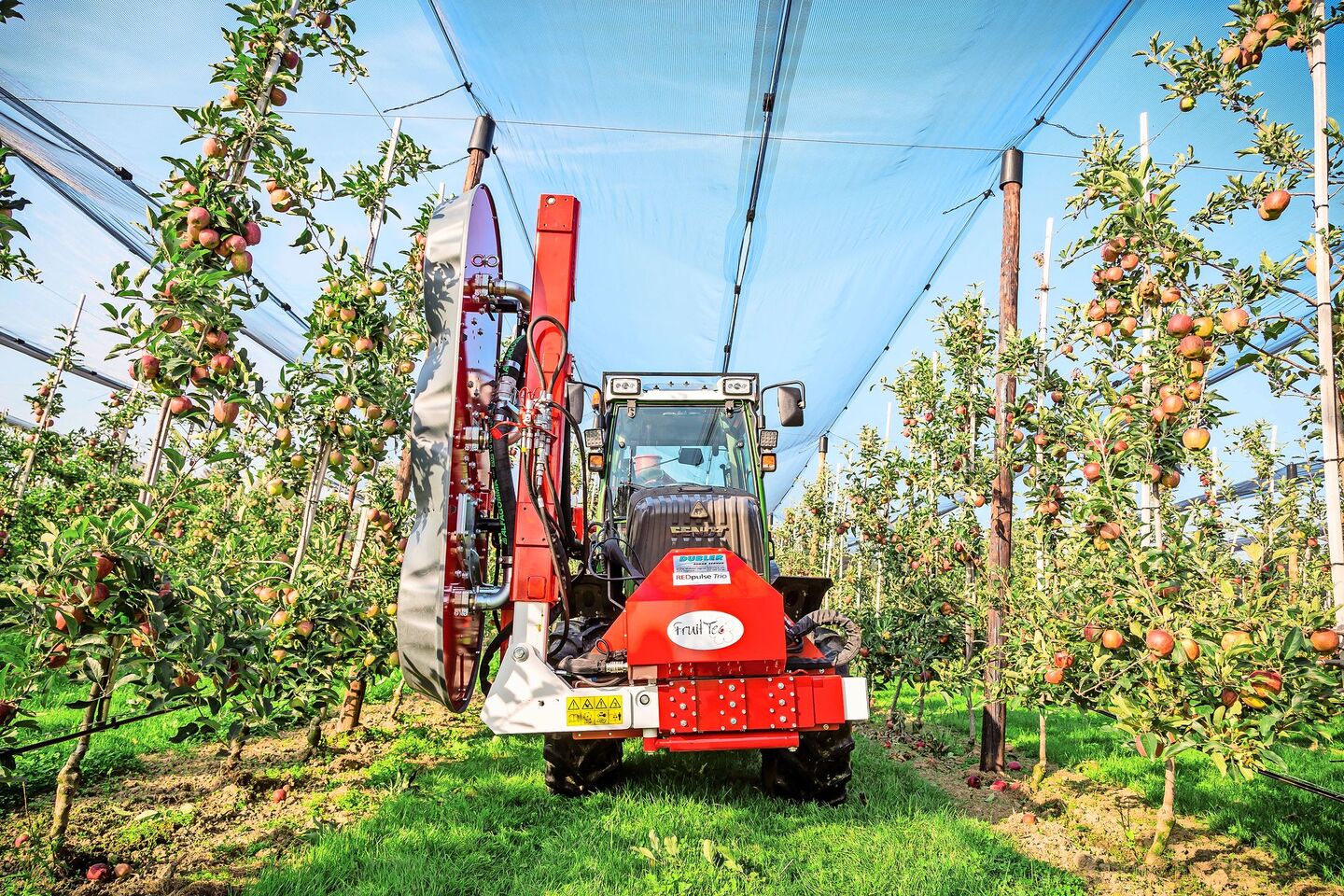 Daraufhin habe er für seinen Betrieb verschiedene einseitige wie auch doppelseitige Geräte zur modernen und nachhaltigen Bewirtschaftung durchgerechnet. Doch egal, wie die Zahlen gedreht wurden, der Ansatz schien nicht aufzugehen. Für den jungen Obstbauern war jedoch klar: Wenn sein Betrieb irgendwann eine neue Lösung braucht, dann muss es, um effizient arbeiten zu können, ein doppelseitiges Gerät sein. Und so kam der Gedanke eines Lohnunternehmens.