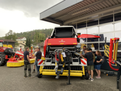 Auf dem Firmengelände gab es nämlich alles zu sehen, was das Pöttinger-Herz begehrt. Die verschiedenen Ladewagen, Band- und und Kreislerschwader, Mähwerke, Ballenpressen, Pflüge und Sämaschinen im Pöttinger-typischen Farbschema Rot-Weiss-Gelb gaben denn auch trotz leichtem Regen viel Stoff für regen Austausch und zum Fachsimpeln.