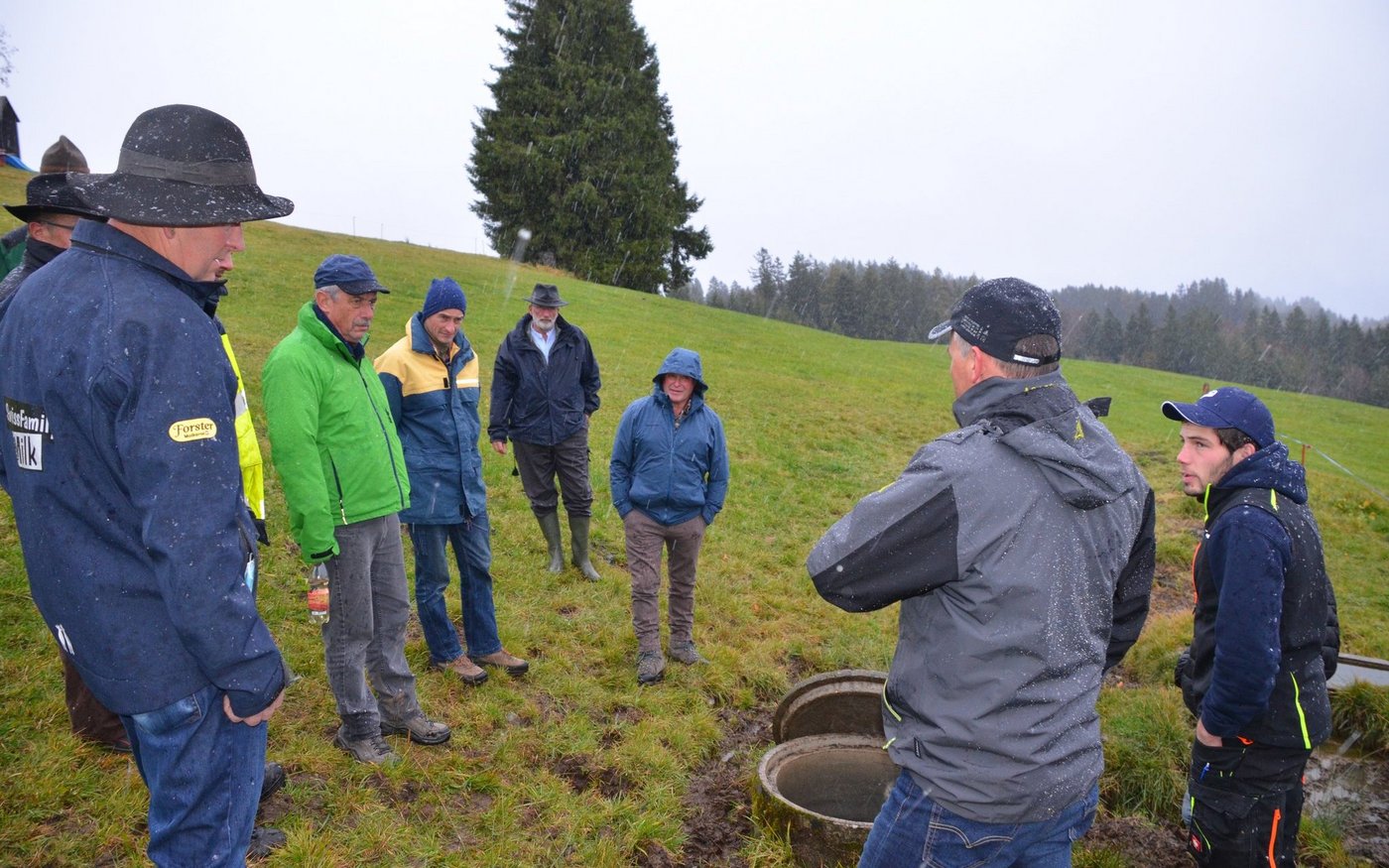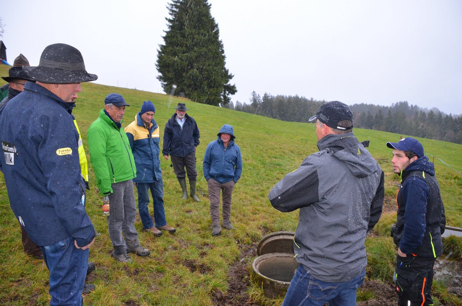 Es wurde u. a. darauf hingewiesen, dass auch die Möglichkeit bestehe, die Quellen mit einer Direktfassung zu erschliessen. Dabei wird ein bodenloser Schacht auf die Quelle gelegt und abgedichtet. Dabei sollte das Wasser nicht aufgestaut werden, dies ist für die Quelle schädlich und kann die Nutzung gefährden. Allenfalls kann mit Hilfe von Bollensteinen die Ausflusshöhe etwas erhöht werden. Diese Quellfassung ist aber betreffend Sauberkeit des Wassers weniger gut und daher eher für Brunnenfassungen geeignet. Da ist noch die Grundwasserfassung, welche in dieser Region weniger vorkommt. Hier wird ein Schacht mit Löchern im Grundwasserbereich mit Lehm seitlich von oben abgedichtet eingegraben.