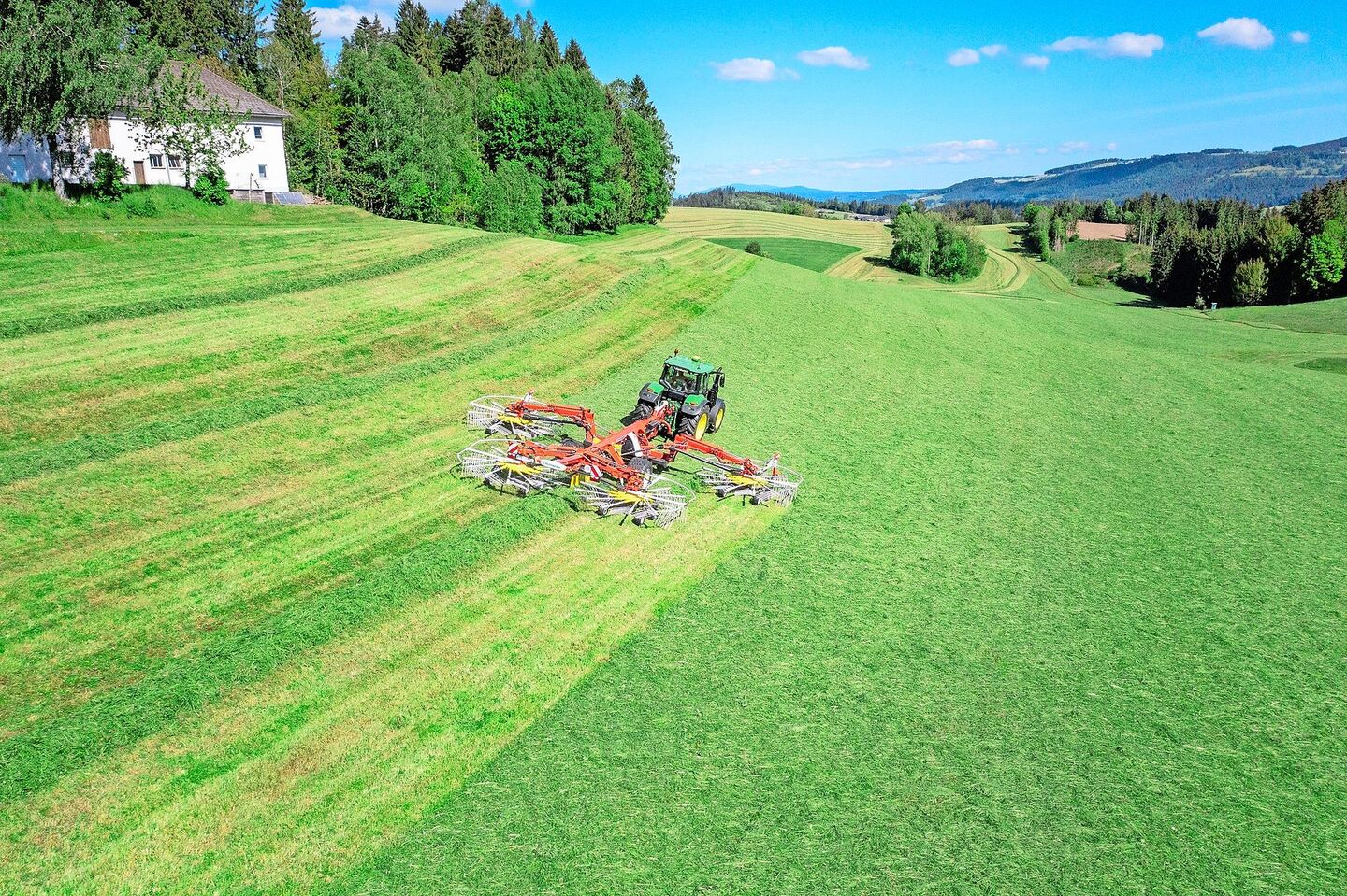 Wer in solchen Momenten auf Schlagkraft seiner Maschine mittels Arbeitsbreite und auf ein zügiges Arbeiten setzen kann, weiss: Der Kampf gegen das Wetter ist noch nicht verloren. In einem Durchgang Fläche machen, präzise Schwade legen, keine Zeit verlieren. Denn wenn der Regen kommt, entscheidet oft die Technik über die Qualität – und über den Ertrag.