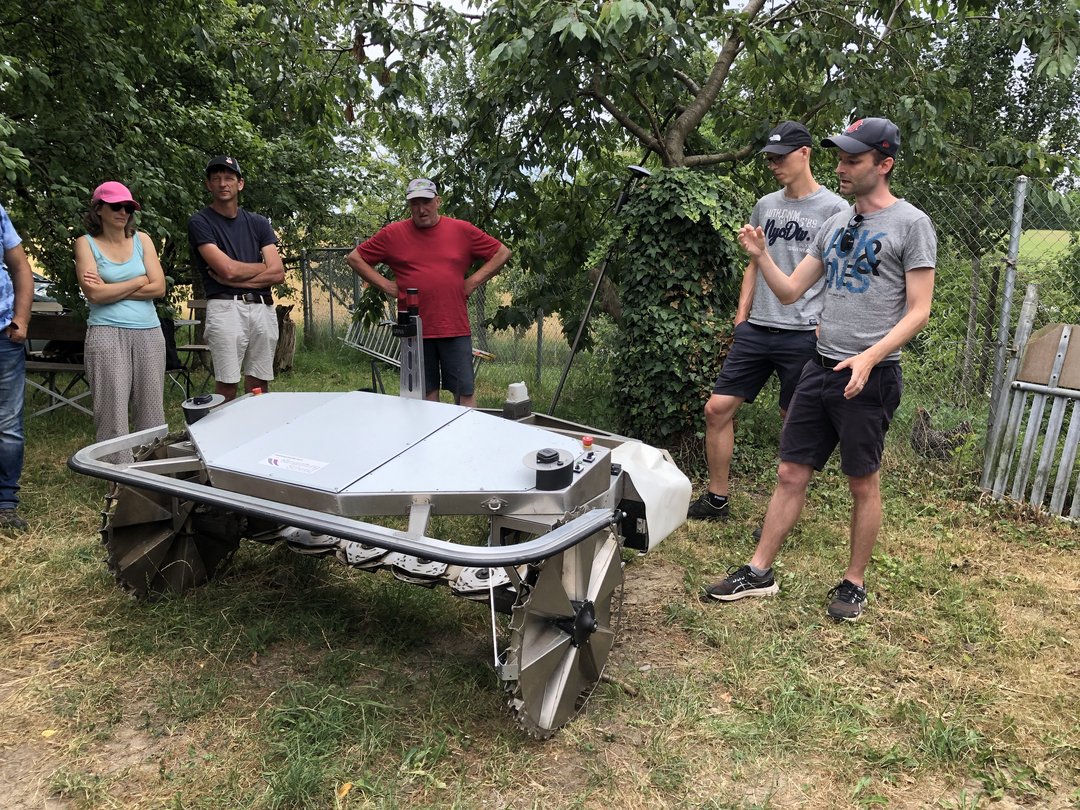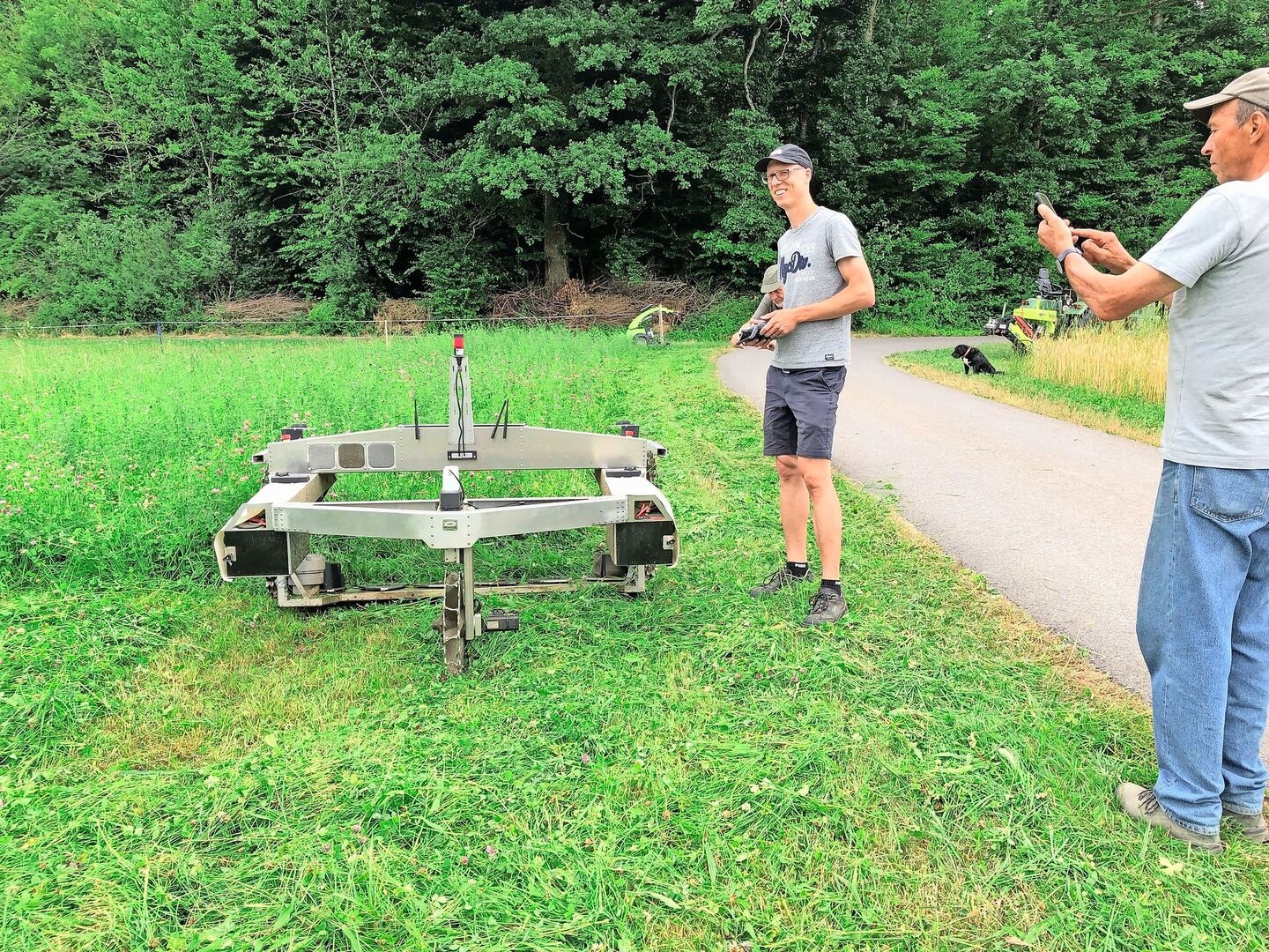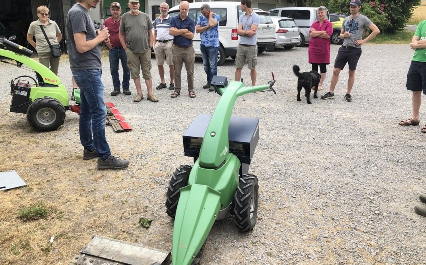 Jedes Jahr trifft sich die Gruppe zum Austausch und zu Besichtigungen, so auch Anfang Juli auf dem Erushof. Nebst den schon erwähnten am Hof vorhandenen E-Geräten waren die Highlights der auf Elektroantrieb umgebaute Bührer und insbesondere die selbstfahrende Mähmaschine Hillbot.