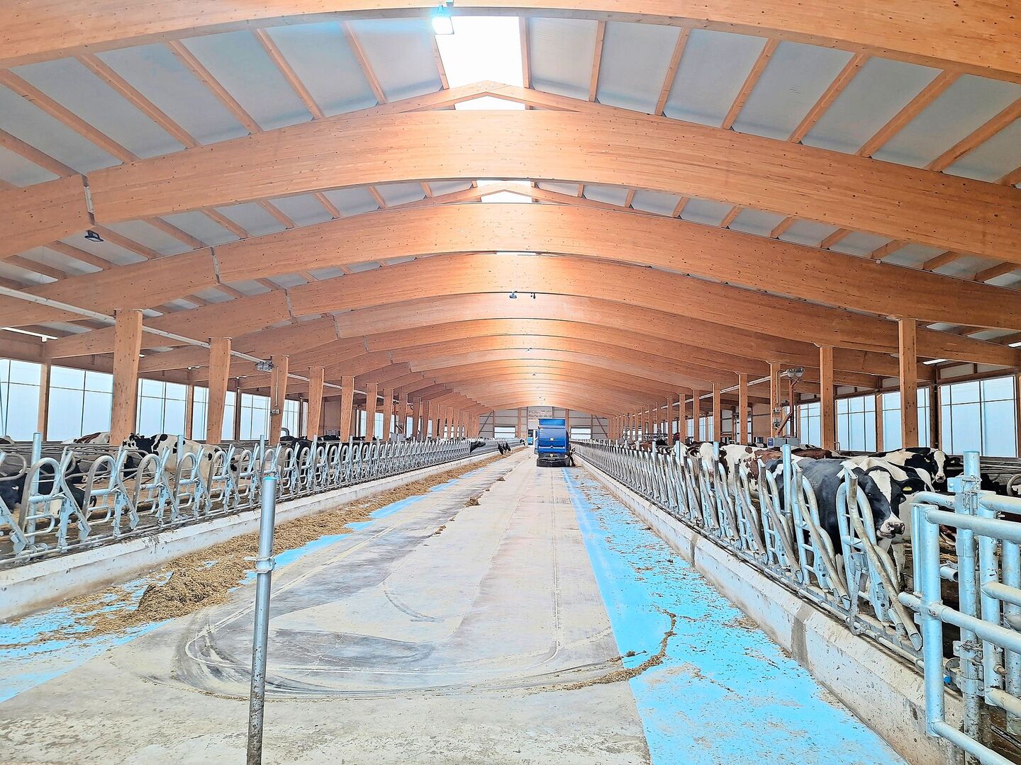 Die Installation des Karussells ist Teil einer weitaus grösseren Baukampagne. Seit kurzem gibt es auf dem Betrieb eine neue Maschinenhalle, einen grossen Wartebereich für den Melkstand, einen zweiten Stall für die Milchkühe, ein Gebäude für die Futterzubereitung der Rinder, die sogenannte «Küche», zwei Grassilos und zwei Maissilos. Auf den Dächern wurden Sonnenkollektoren installiert, um den Energieverbrauch zu senken und die Autonomie des Hofes zu erhöhen. «Insgesamt belaufen sich die Investitionen auf rund siebeneinhalb Millionen Franken», berichtet Daniel Menoud. Die fiesige Baustelle ist noch nicht abgeschlossen, aber alles ist bereits betriebsbereit.