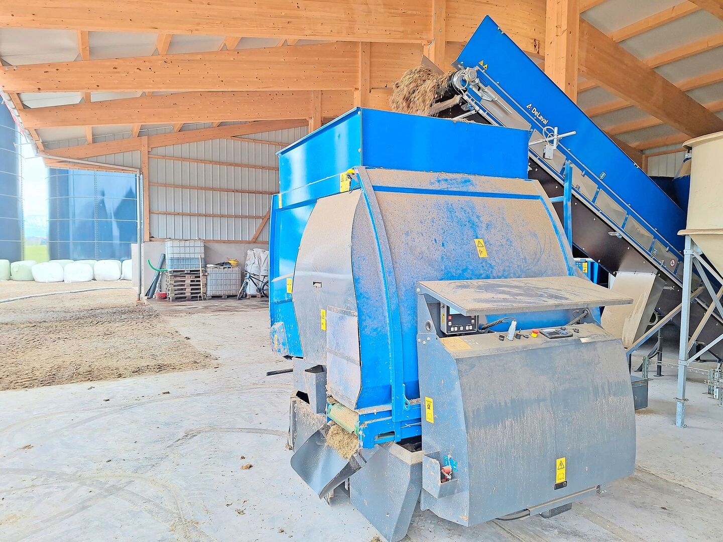 Beide Ställe sind mit einem von DeLaval entwickelten Fütterungsroboter namens «Optimat» ausgestattet. Im neuen Stall sorgt das vollautomatische System dafür, dass das Futter von den Silos in die Küche gelangt. Durch das Dach des Gebäudes gelangt das Futter über Leitungen auf die Lagertische. Durch den eingebauten Schubboden gelangt das Futter zu einem Auflöser, der es auf ein Förderband legt, um es zum Mischwagen zu bringen. Dieser ermöglicht die Programmierung mehrerer Rezepte. Ein autonomer Waggon holt schliesslich das Futter ab und verteilt es. Innerhalb von 24 Stunden kann er bis zu fünfzehn Fahrten durchführen. «Bei der Inbetriebnahme hatten wir einige Pannen, aber heute sind sie immer seltener», berichtet Daniel Menoud, der von dieser Innovation überzeugt ist.