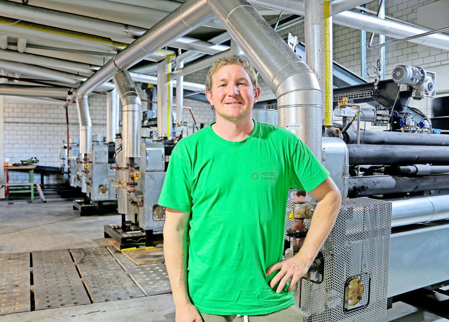 Die Vor- und Nachteile von Solarenergie sind ihm somit vertraut. «Das Manko der schwachen Winterproduktion lässt sich mit Holz sehr gut kompensieren», erklärt er. Deshalb hat er sich vertieft mit dem Thema befasst und vorerst geplant, lediglich den eigenen Betrieb mit der Abwärme aus der Stromgewinnung mit einer 30-kW-Anlage zu versorgen. Er und Gebäudetechnikingenieur Manuel Hebler stellten im Verlauf der Abklärungen fest, dass in der Gemeinde ein grosses Potenzial an Fernwärmeabsatz besteht. «In der Folge entschlossen wir uns für ein grösseres Projekt. Und zwar mussten wir erheblich grösser planen. Denn die Initialkosten, um ein Fernwärmenetz aufzubauen, sind hoch. Um die Investitionen zu amortisieren, braucht es eine gewisse Absatzmenge.» So wurde schliesslich eine Anlage für 340 kW elektrische Primärenergie installiert, Sekundärenergie in Form von Abwärme sind es aktuell 700 kW.