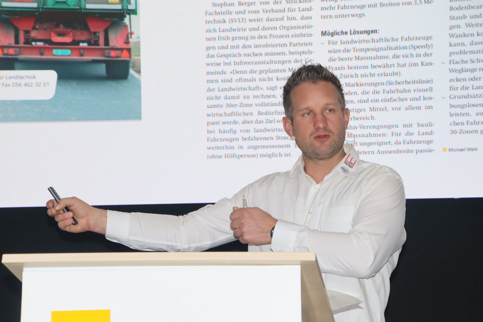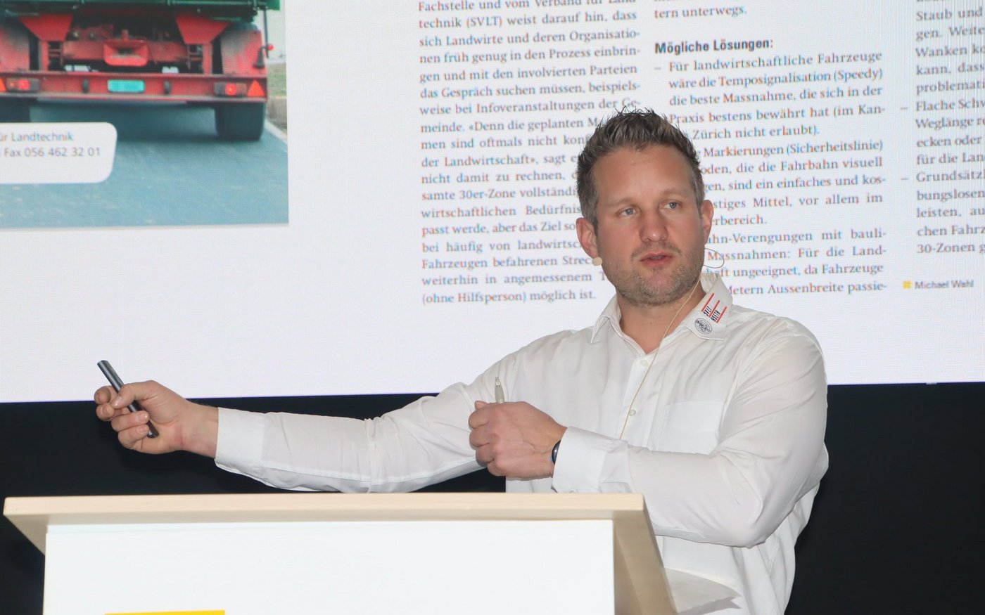 Roman Engeler, Direktor des Verbands Landtechnik Schweiz, kam ebenfalls darauf zu sprechen: «Strassenbauten beschäftigen uns zwischen dem Boden- und dem Genfersee. Es ist wichtig, dass wir auf Normen im Strassenbau Einfluss nehmen können, damit einzelne Normen überarbeitet werden.» Engeler konnte mit einer positiven Neuerung aufwarten: Neu ist der Transport mit eingelösten Arbeitsgeräten und Anhängern erlaubt.