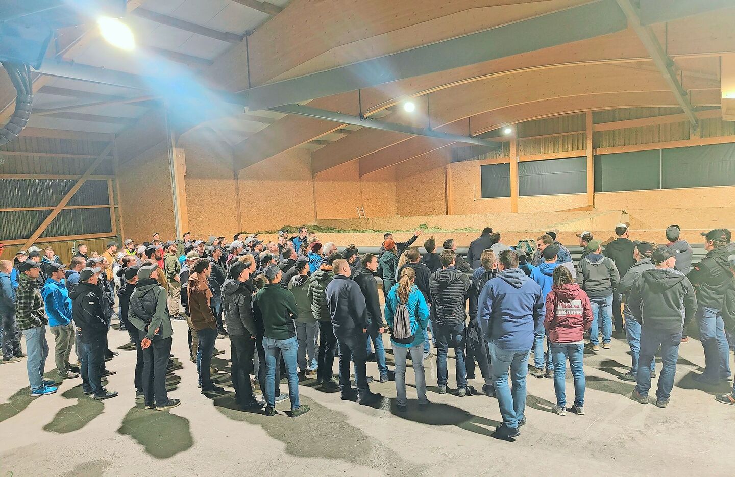 Sehr gut besucht mit über 100 Teilnehmenden war der Treff der Junglandwirte Zentralschweiz bei Michael und Fabienne Wallimann vom Bitzihof. Der Betrieb liegt oberhalb von Alpnach. Ein Stallbrand 2021 stellte die Familie vor grosse Herausforderungen. Nach vielen Bauprojekten auf dem Betrieb in den Vorjahren, so auch mit einem 2014 gebauten neuen Stall, war der Brand wenige Jahre später ein grosser Rückschlag.