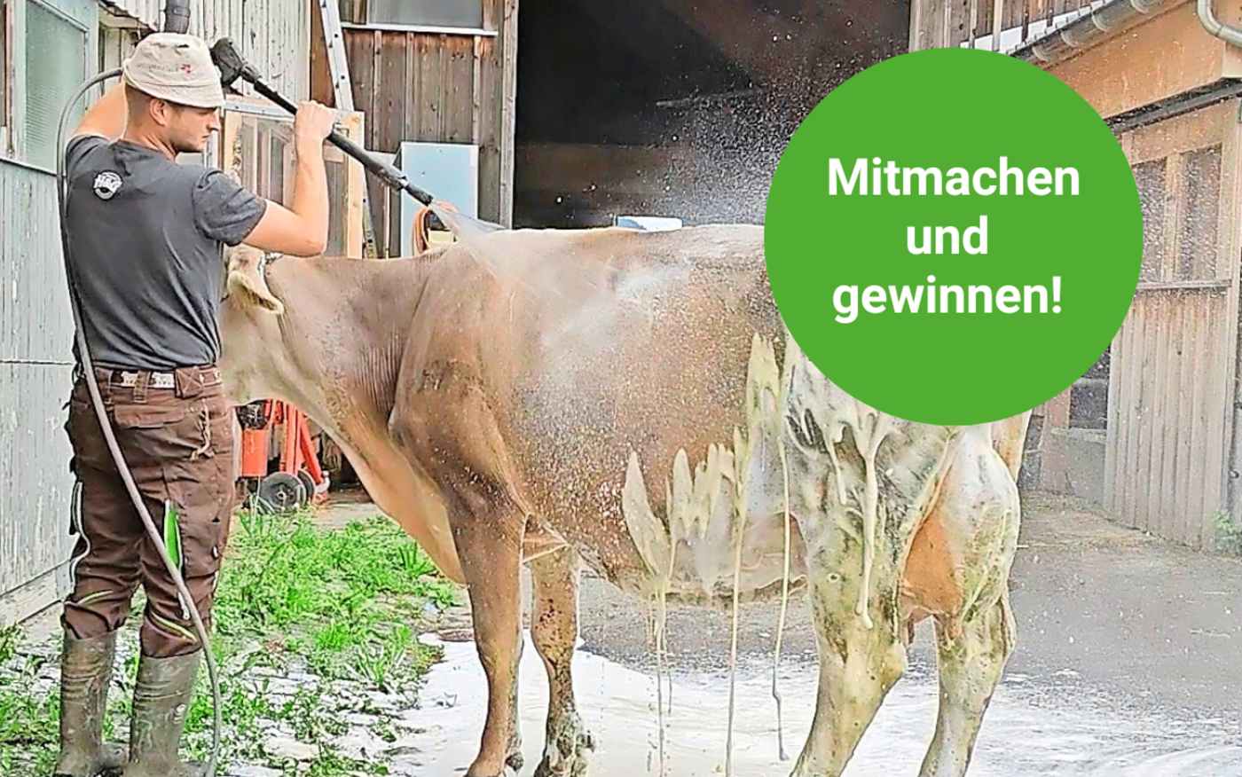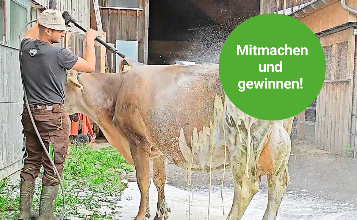 Möchten auch Sie Ihre Schweine, Pferde oder Rinder mit dem Schaumreiniger waschen? Gemeinsam mit der Ciaras AG verlost die BauernZeitung drei Einsteigersets (inkl. Schaumlanze) des Clappt-Nutztierschaumreinigers. Das Ganze ist allerdings mit einer kleinen «Verpflichtung» verbunden: Wer einen Kanister des Clappt-Schaumreinigers gewinnt, wird nach den ersten Tests im Rahmen der Rubrik «Die BauernZeitung fragt» zu den gemachten Erfahrungen befragt und erhält die Gelegenheit, ein ehrliches Feedback abzugeben.