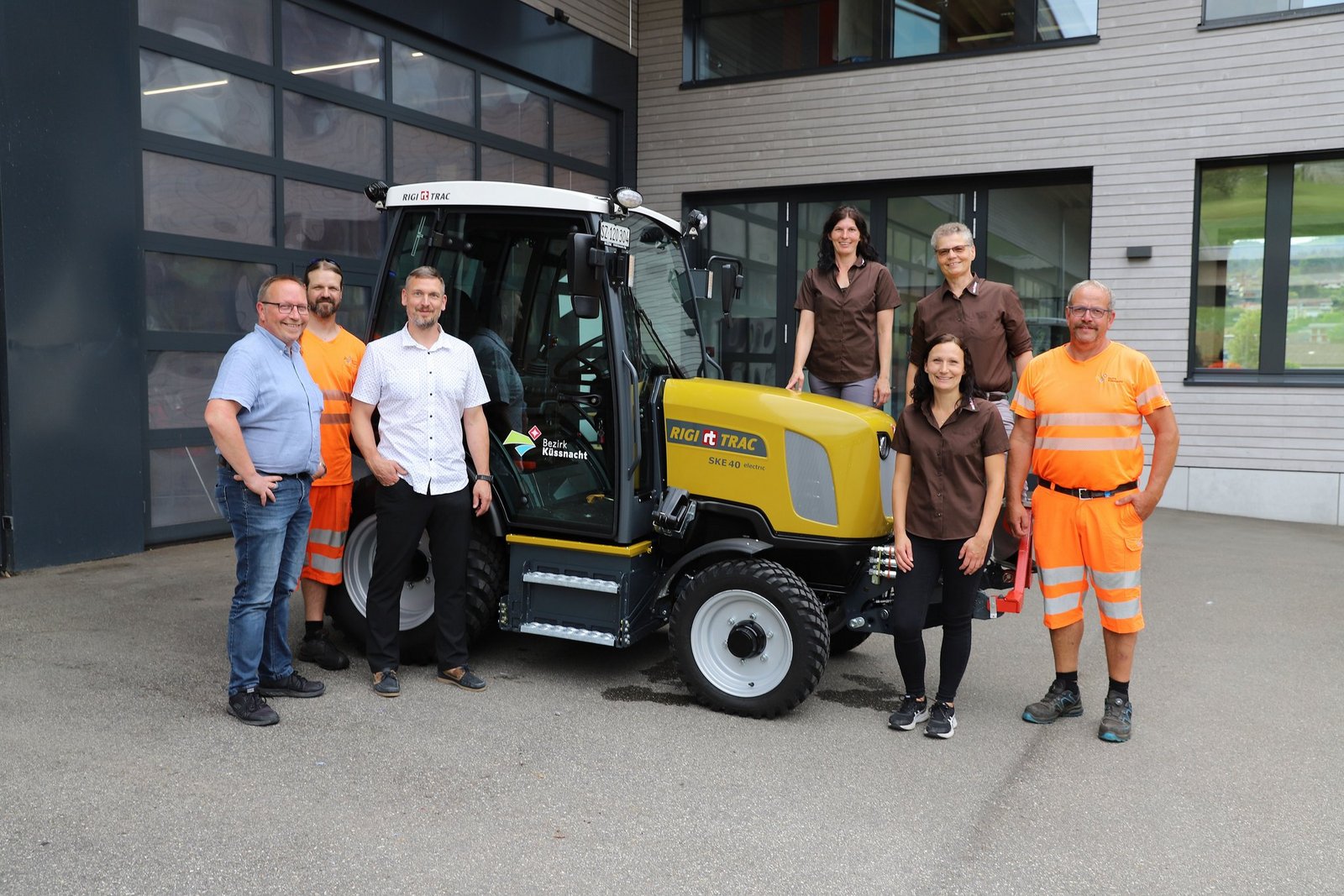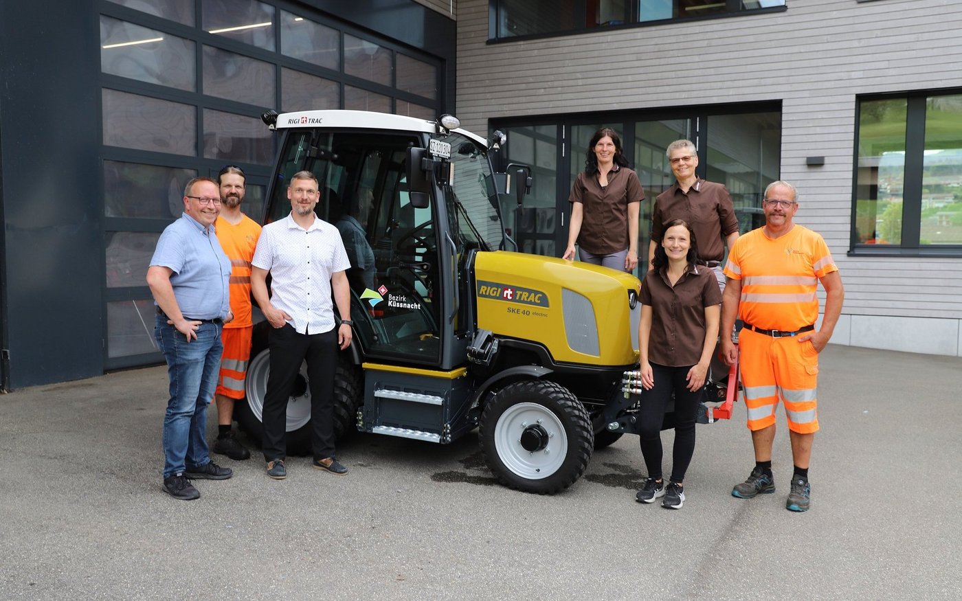 «Dass wir das erste Fahrzeug innerhalb der Schweiz dem Bezirk Küssnacht übergeben durften, erfüllt uns mit grosser Freude», sagte Theres Beutler-Knüsel. Es handle sich beim Rigitrac SKE 40 Electric um den weltweit ersten vollelektrischen Traktor, der besonders für Energiestädte geeignet sei, die eine Vorreiter-Rolle bezüglich Nachhaltigkeit übernehmen wollten. Die Leistung des Kleintraktors mit einem Wirkungsgrad von 98% sei «einfach genial».