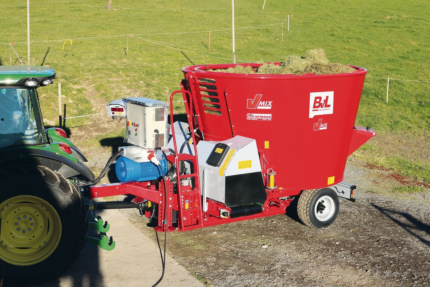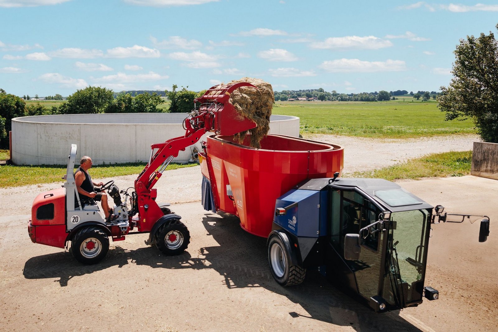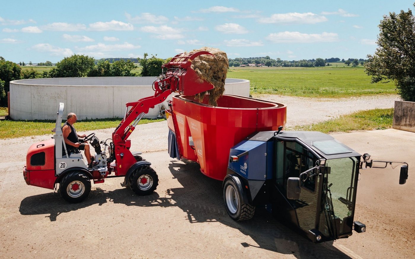 Hybride Arbeitsweise: Das Mischen mit Strom spart Diesel und senkt so die CO2-Bilanz eines Betriebs. Das Ausbringen mit dem Traktor nutzt idealerweise bereits eine Ressource, die man auf dem Betrieb hat.