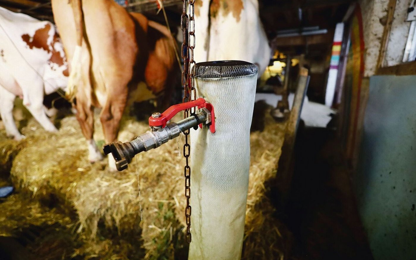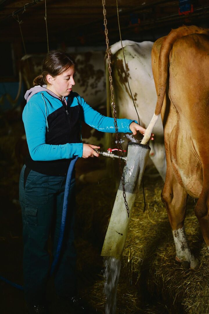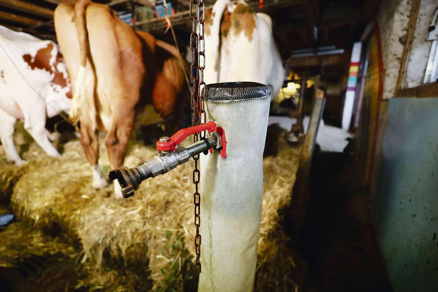 «Das Prinzip ist ganz einfach», meint Nina Koller und demonstriert den Wascher. Geübt stösst sie die Schwanzhaare der Kuh «Stärn» durch das Neoprenloch und öffnet den Hahn. Das Wasser schiesst ins Rohr, spült im Innern den schmutzigen Schwanz ab und wird in den Schwemmkanal geleitet. Nach wenigen Sekunden ist die Dusche schon vorbei, die nassen Haare der Red Holstein-Kuh sind wieder sauber. «Stärn» selbst scheint sich nicht zu stören und mahlt seelenruhig vor sich hin. «Die Kühe haben sich sehr schnell daran gewöhnt», erzählt Koller und ergänzt: «Auf jeden Fall hat sich keine dagegen gewehrt.»
