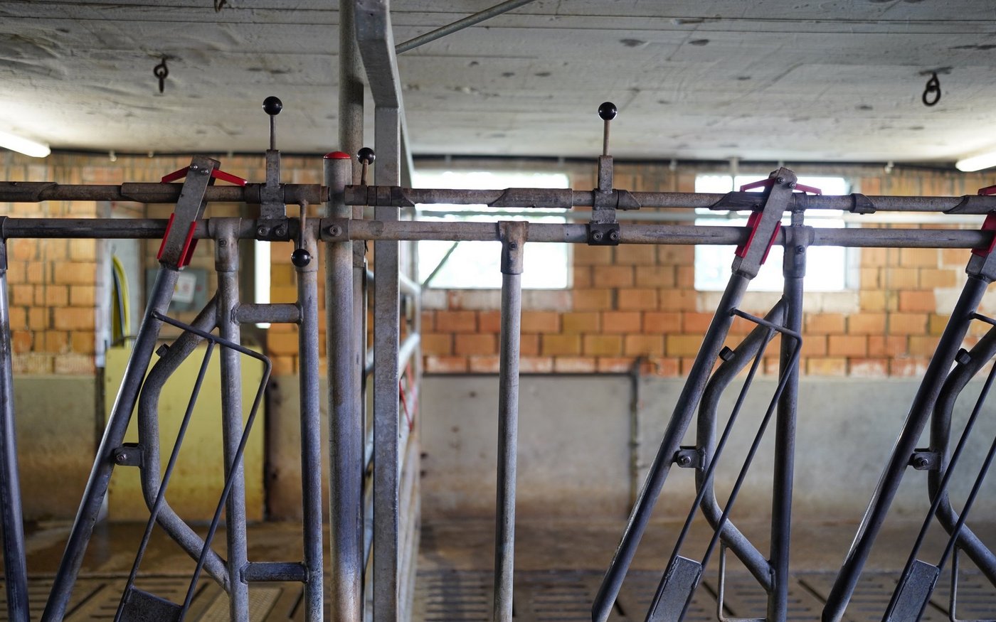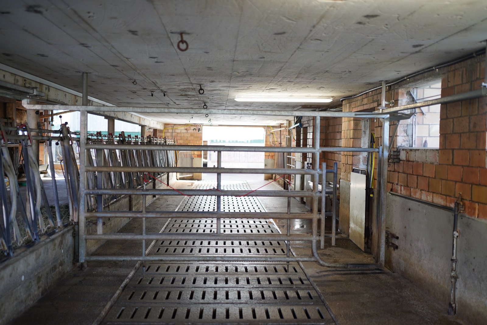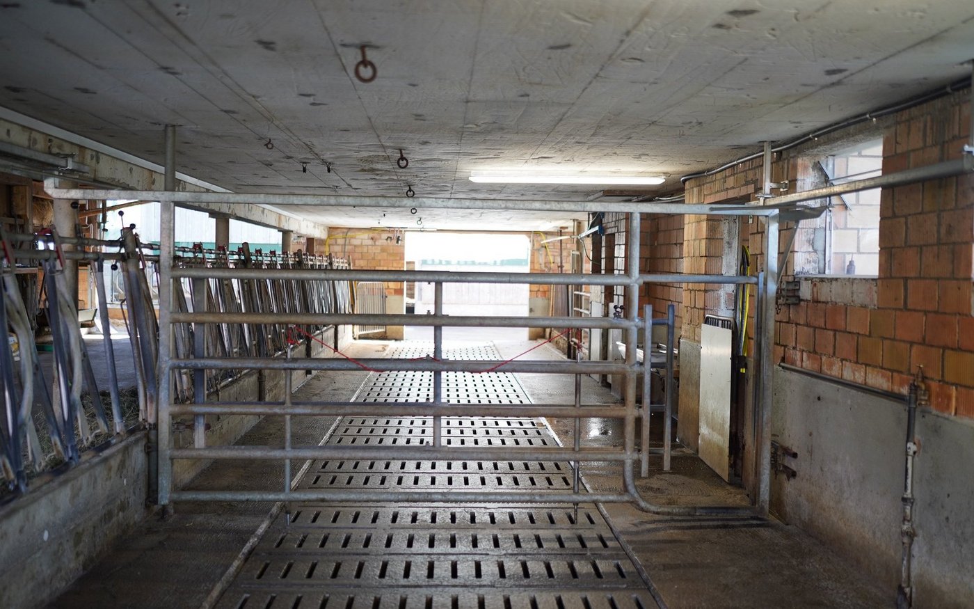 Das in der Stallmitte hängende Gatter gehört zum Alltag der Tiere