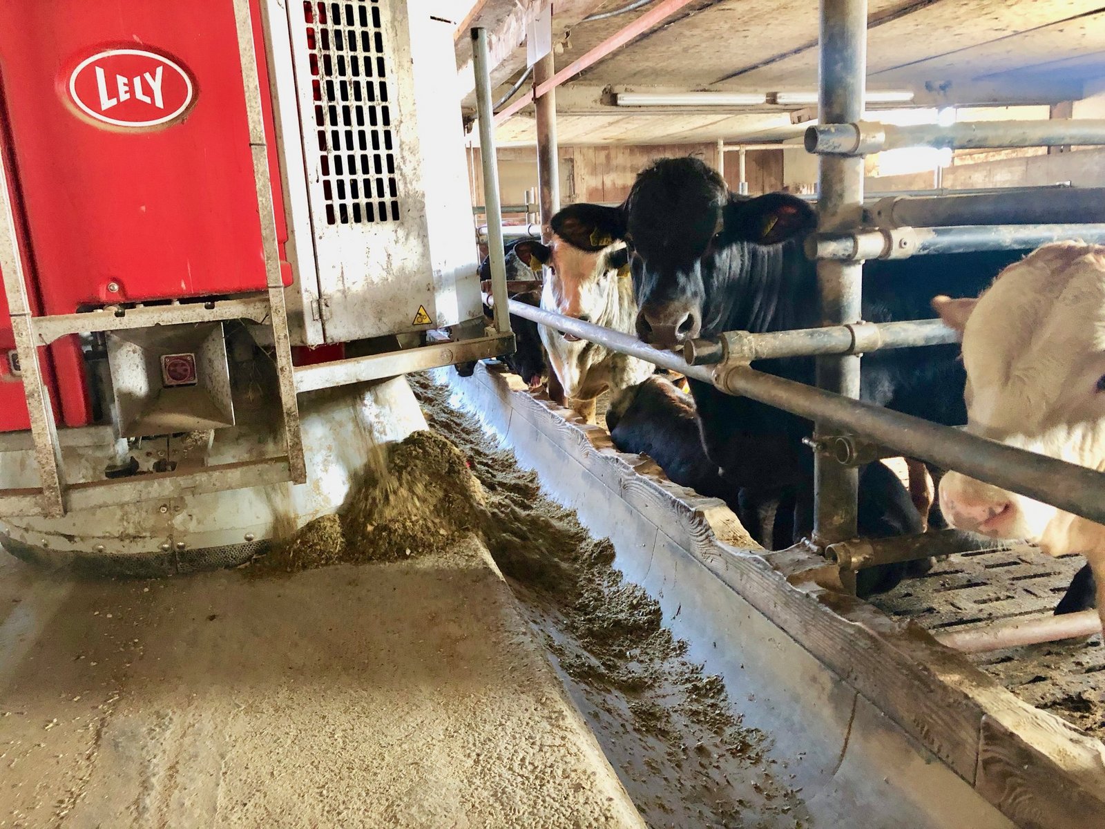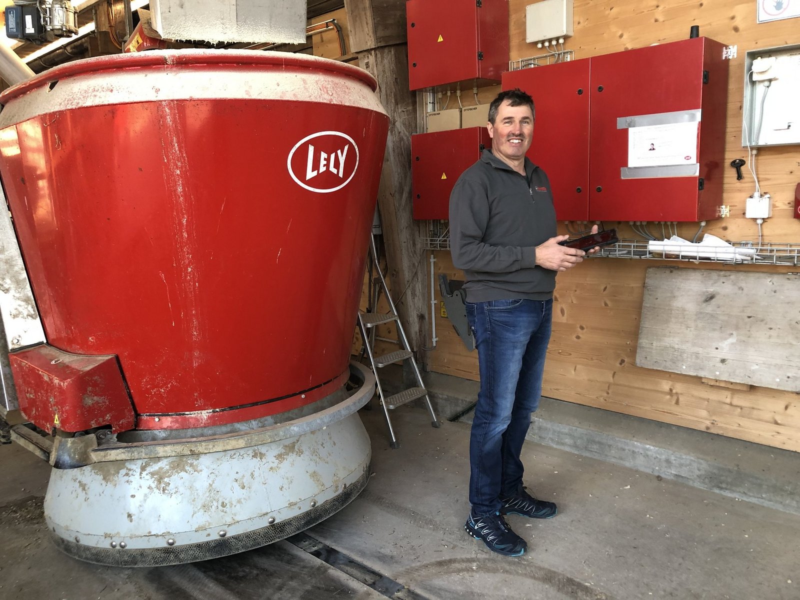Zurück in der Futterküche mischt der Roboter die Ration für die Tiere, die Futter benötigen. «Die Systeme des Roboters und der Silofräsen kommunizieren hierfür miteinander», erzählt Roman Aregger. Die Feineinstellung für die Entnahmemengen sei zu Beginn gar nicht so einfach gewesen. Man müsse das Nachrieseln berücksichtigen. «Auch bei Kleinstmengen wird es schwierig mit dem genauen Gewicht.» Anschliessend fährt der Lely Vector erneut los und legt die Ration am richtigen Ort ab.