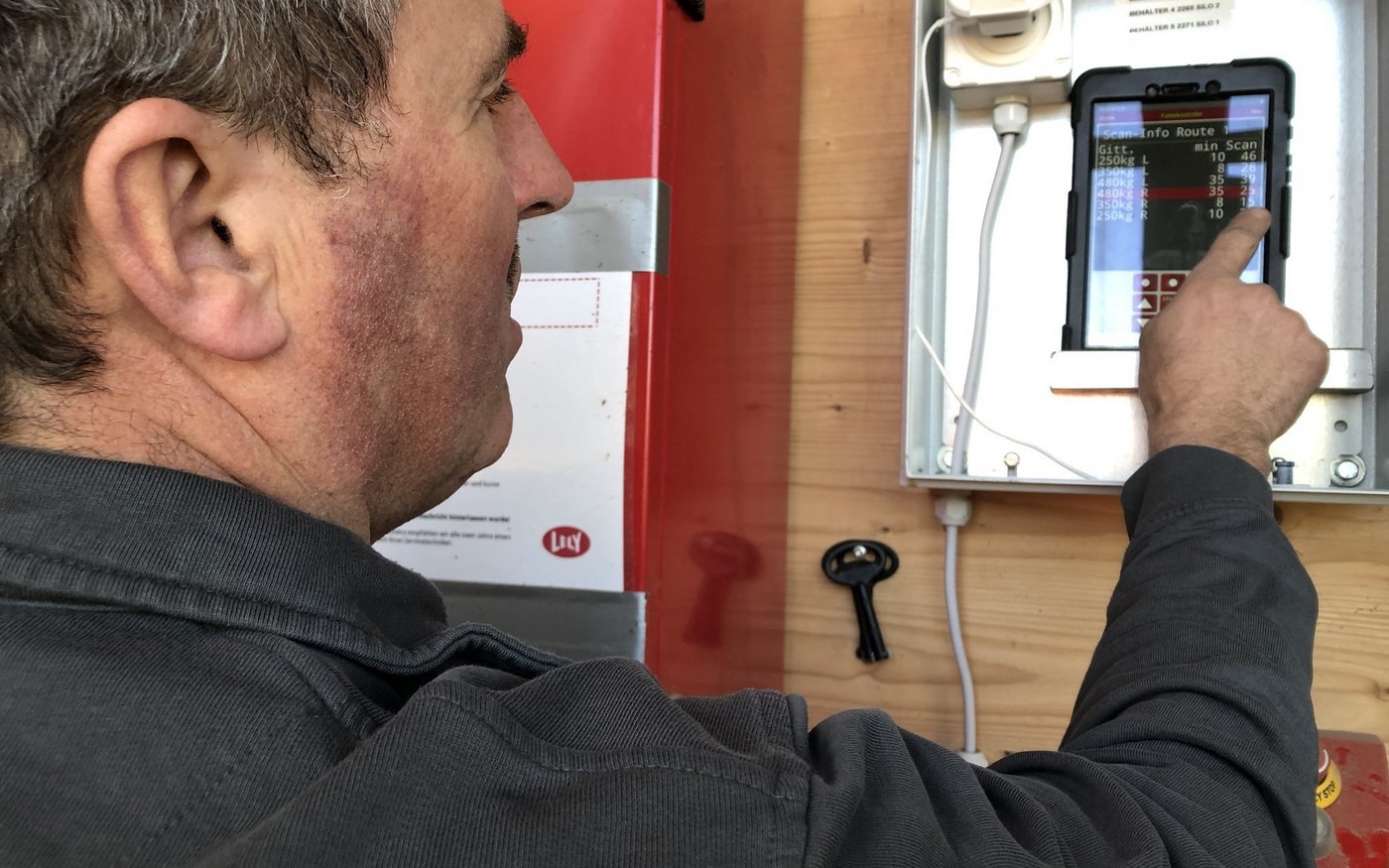 Zwischen 6 Uhr und 21 Uhr zieht der Roboter ungefähr alle 75 Minuten los und scannt mittels Laser die Futterhöhe. Im System hat Roman Aregger für jede Gewichtsklasse Richtwerte hinterlegt, die nicht unterschritten werden dürfen. Der Lely Vector orientiert sich bei seinen «Ausflügen» seitlich an einem Band. Die Wegstrecke ist mittels Schrittzähler hinterlegt. Ebenfalls ist im System erfasst, wo die Gewichtsklassen der Tiere ändern.