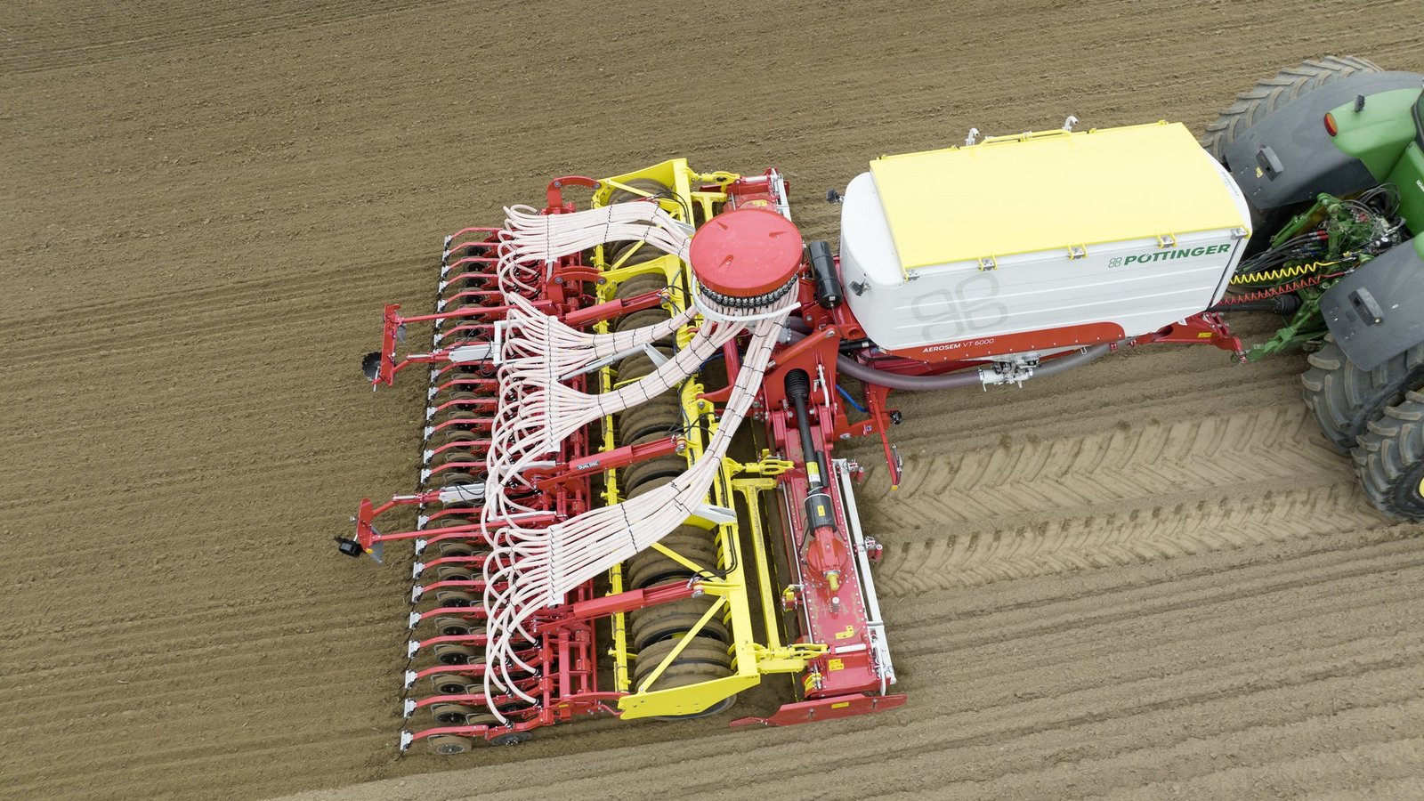 Durch die grossen Packerreifen werden der Bodendruck und der Rollwiderstand verringert, wodurch hohe Fahrgeschwindigkeiten möglich sind. Damit auch bei höherem Tempo exakt dosiert und präzise gesät werden kann, setzt Pöttinger weiterhin auf das Aerosem-Drucktanksystem und auf das Dual-Disc-Doppelscheibenscharsystem.