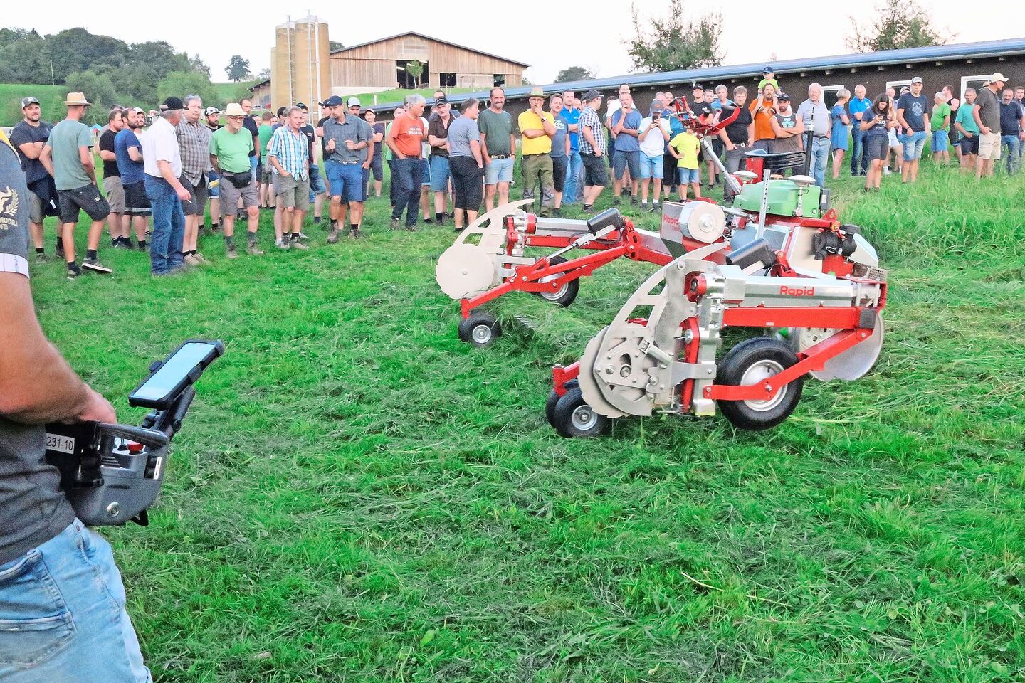 Dass in Zukunft auch im Futterbau autonome Geräte zum Einsatz kommen werden, zeigten die Firma Paul Forrer AG mit dem Modell Köppl Gecko und die Rapid Technik AG mit ihrem Cosmos. Beide satellitengesteuerten Grundmaschinen waren mit einem Doppelmesserbalken ausgestattet und mähten das junge Gras äusserst zügig.