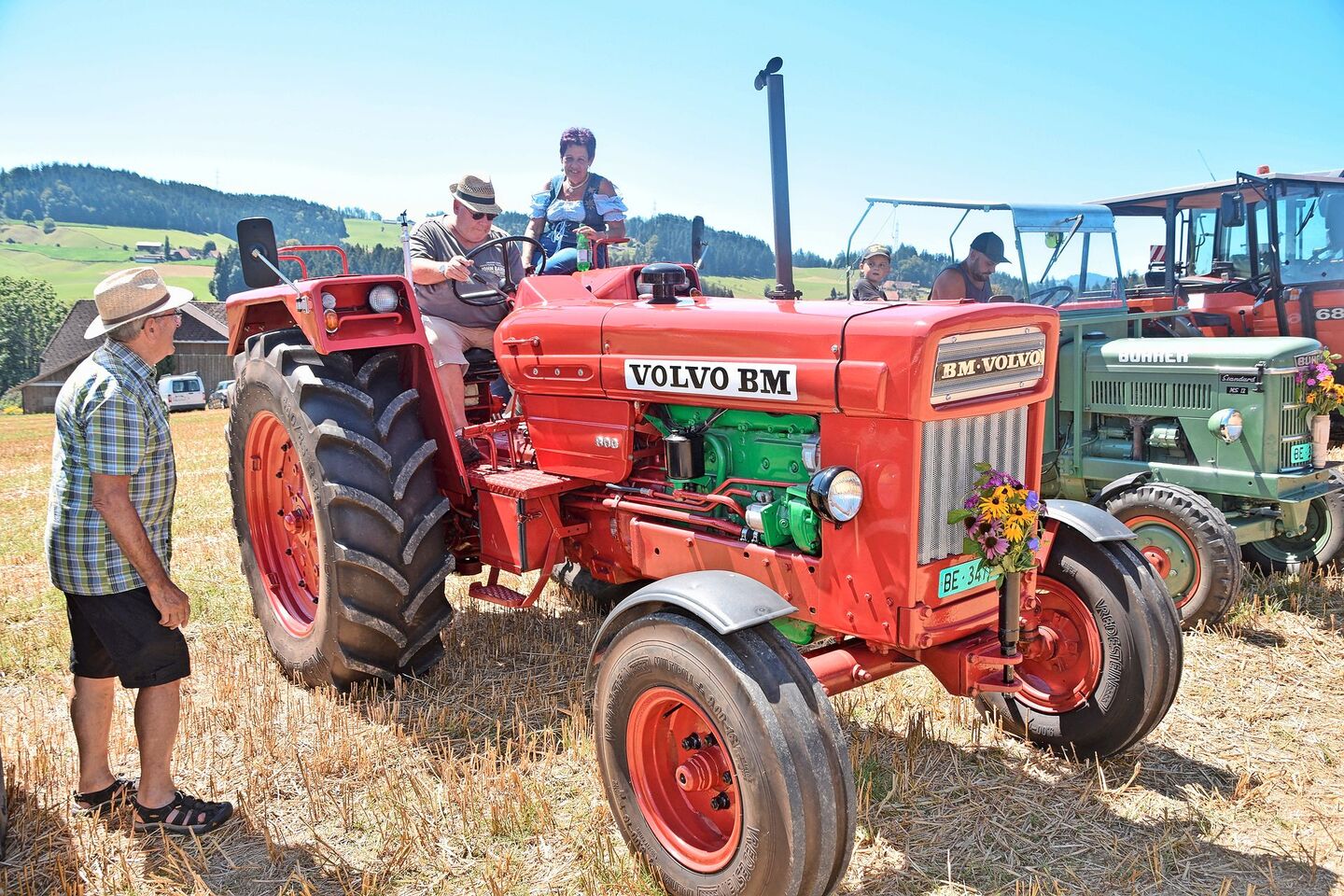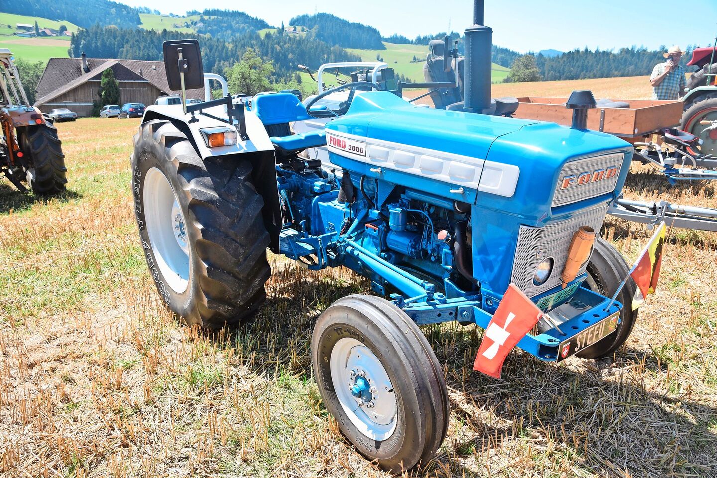 Sicher weniger bekannt als der Hürlimann in der Schweiz war der Volvo-BM-Traktor. Auf dem Dietlenberg konnten die Besucher aber ein Exemplar bewundern. Der Koloss bringt gut 4200 kg auf die Waage und kann schon mit 96 PS auftrumpfen. Von 1966 bis 1978 wurden diese Traktoren von Volvo, einem schwedischen Unternehmen, produziert. Hingegen waren die Ford-3000-Traktoren fast in jedem Dorf in der Schweiz zu finden. Der Produktionszeitraum dieser Serie, die aus dem englischen Fordson-Werk stammte, dauerte von 1964 bis 1975. Mit 48 PS tat er in der Landwirtschaft wertvolle Dienste.