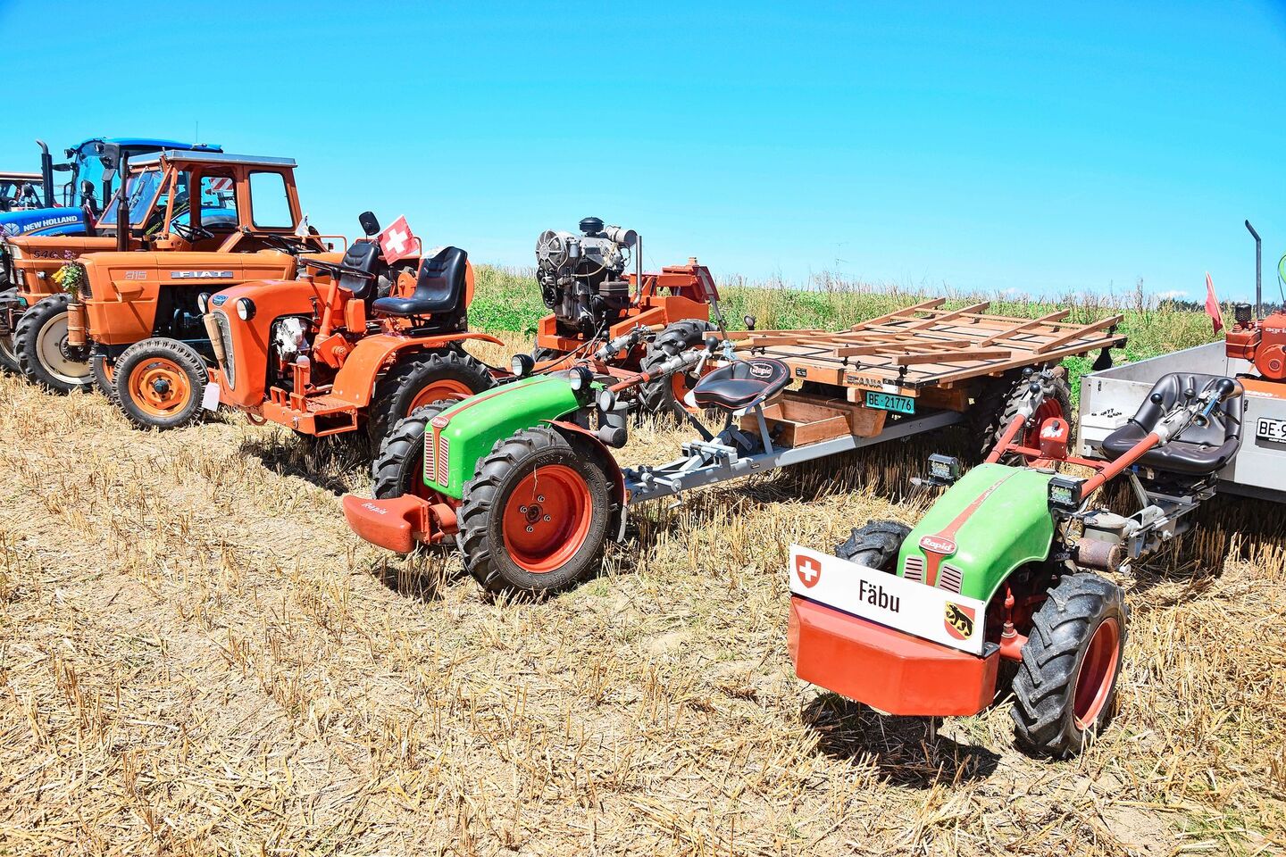 An keinem Traktorentreffen dürfen die alten Hürlimann fehlen. Hürlimann war ein Schweizer Traktorenhersteller, der heute jedoch zur italienischen SDF-Gruppe gehört. Gegründet wurde die Firma 1929 von Hans Hürlimann in Wil im Kanton St. Gallen. Im Jahr 1939 präsentierte Hürlimann eine Weltneuheit: den ersten Dieselmotor mit Direkteinspritzung. Bis Mitte der 1960er-Jahre waren bereits mehr als 10 000 Traktoren verkauft. «Unter den Landwirten erwarben sich die Hürli-mann-Traktoren den Ruf als kleine Rolls-Royces», meinte ein Besucher des Traktorentreffens lachend. Die meisten Bestandteile der Hürlimann-Traktoren wurden im eigenen Haus hergestellt.