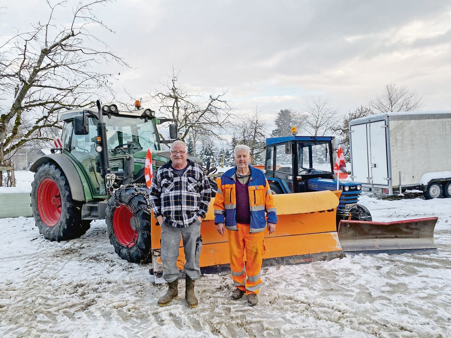Wenn der Wetterbericht Schnee prognostiziert und Frau Holle über Nacht ihre Kissen schütteln will, dann weiss Jürg Hänni, was er zu tun hat. Ein kurzer Anruf genügt und der 62-jährige Meisterlandwirt aus Allmendingen bei Bern zieht bei seinem Fendt 211 die schweren Schneeketten auf, bevor er ins Bett steigt. Zusammen mit seinem Cousin Alfred Hänni räumt er frühmorgens Strassen und Wege in der Gemeinde vom Schnee frei.