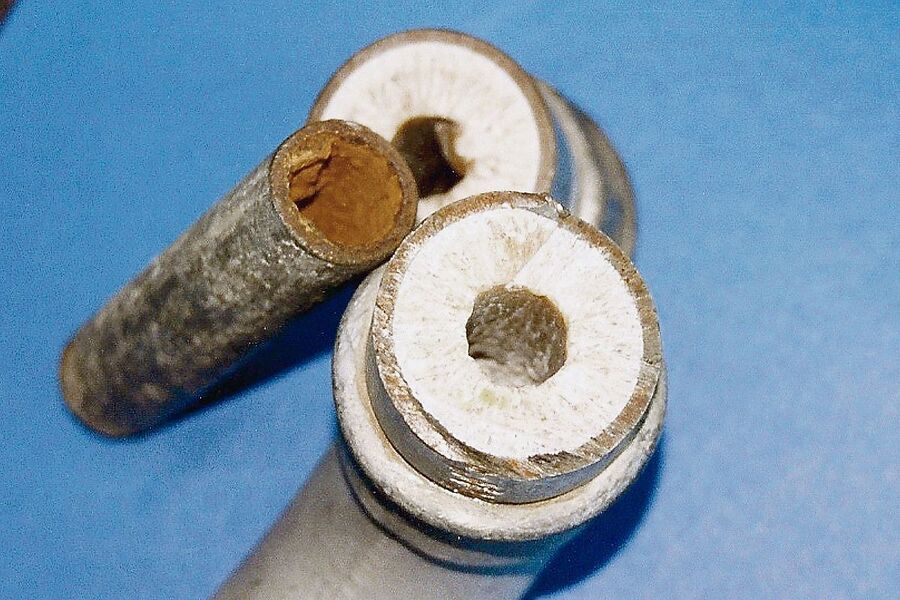 Vielfach bestehe über die Jahre bereits eine leichte und unbedenkliche Korrosion, welche die verzinkte Schutzschicht der Rohre schon angegriffen und aufgelöst hat. «Wenn nun eine herkömmliche Entkalkungsanlage mit Salz zum Einsatz gebracht wird, kann dies den Lochfrass in der Wasserleitung beschleunigen», erklärt Michael Schneeberger. Das durch Salz-Enthärtungsanlagen abgegebene Chlorid hat ein hohes Oxidationspotenzial und kann deshalb korrosionsfördernd wirken.