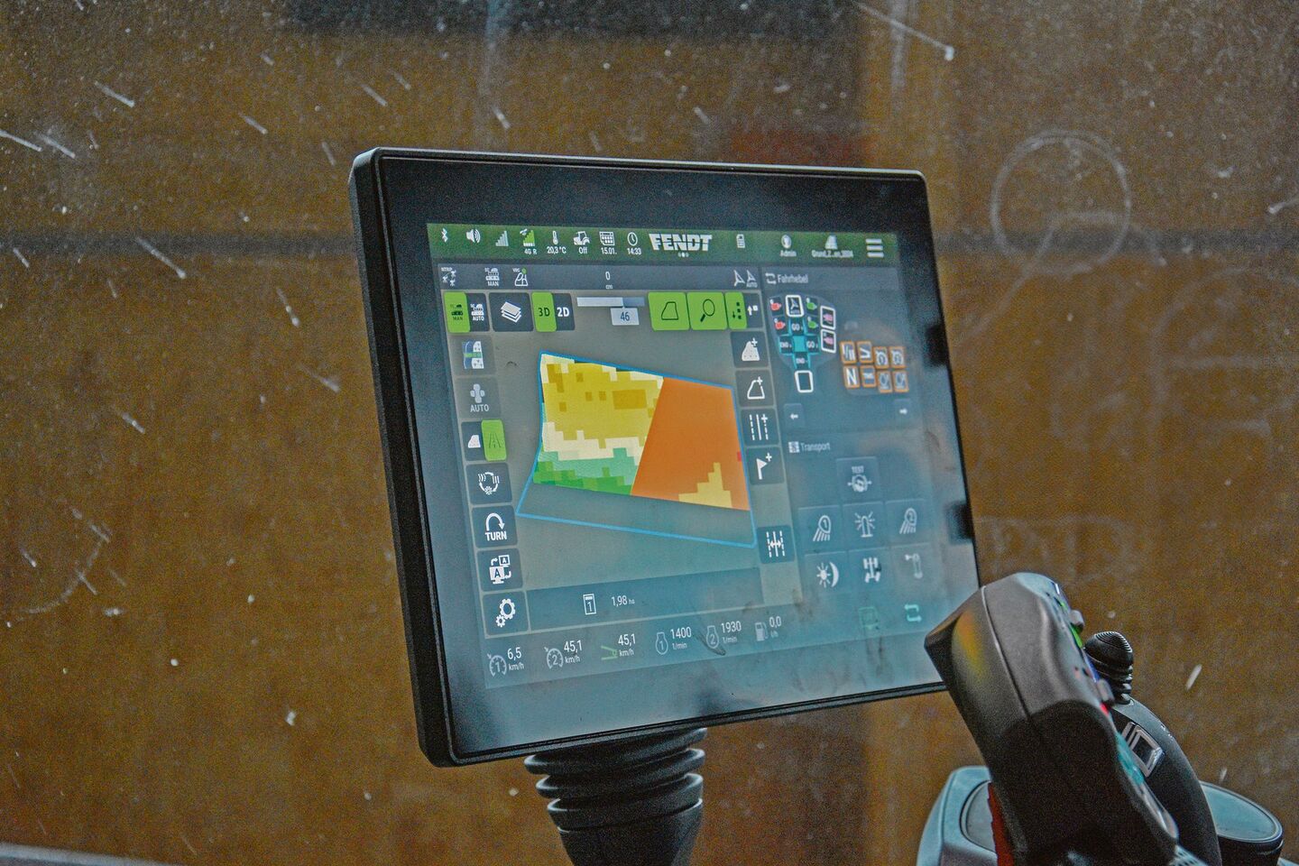 Zuerst hatte ich eine Lösung von Trimble, dann aber habe ich auf Fendt One umgestellt. Ich habe einen Sulky Wiegestreuer (DX30+) mit ISO-Bus und VRA (Variable-Rate-Application) und 15 Metern Arbeitsbreite.
