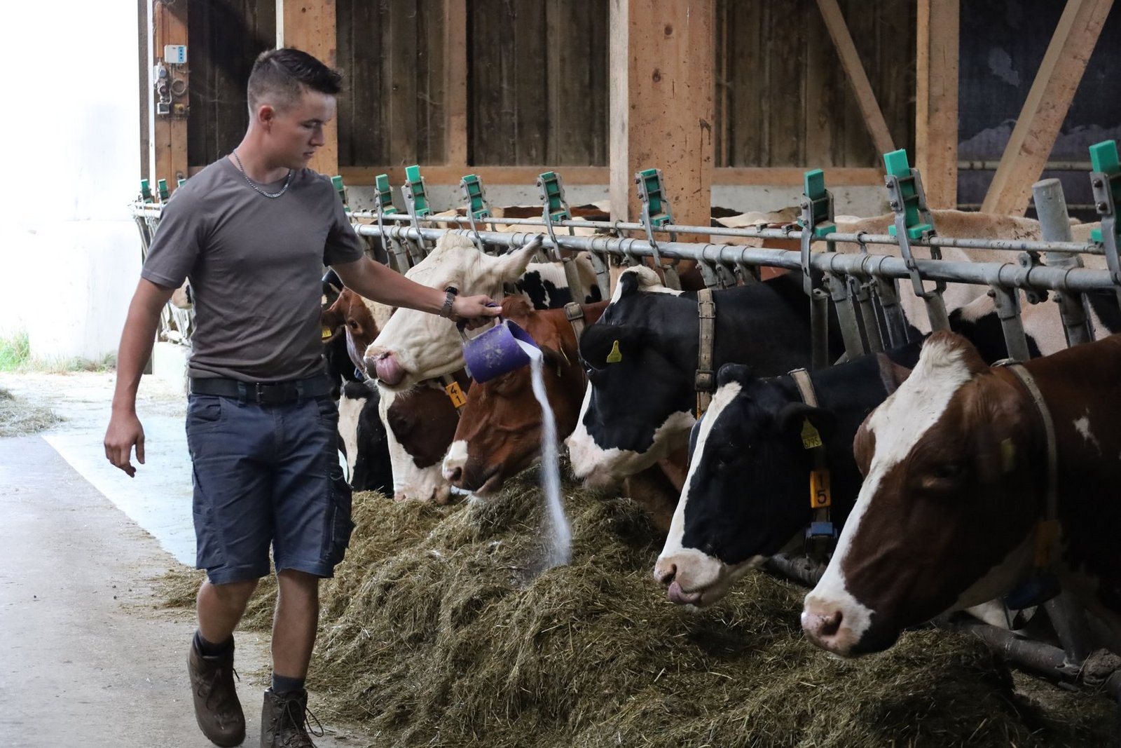Seine Begeisterung für die Landwirtschaft ist spürbar. «Mir gefällt das Zusammenspiel zwischen Natur, Tieren und Pflanzen», erklärt er und ergänzt: «Man sieht am Abend, was man den ganzen Tag gemacht hat, und ist sein eigener Chef.» Für den jungen Landwirt gibt es keine Arbeit, die er nicht gerne macht. «Ich bin sowohl gerne im Stall als auch auf dem Feld – der Ausgleich ist für mich entscheidend», erklärt er.