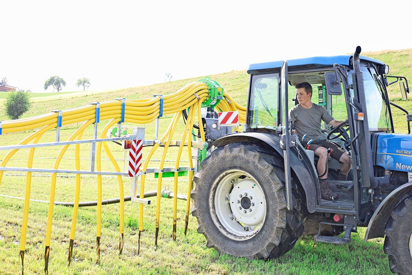 Im vergangenen Jahr hat Roman Hofer die Lehre als Landwirt EFZ abgeschlossen. Bis er im Herbst mit der Ausbildung zum Agrotechniker beginnt, hilft er auf dem elterlichen Betrieb mit. «Wir bewirtschaften einen 25 Hektar grossen Betrieb mit 30 Milchkühen, eigener Aufzucht und Trutenmast», erklärt er. Neben dem Grünland werden auf dem Betrieb zudem Saatkartoffeln und Mais angebaut. «Wenn es in die Fruchtfolge passt, manchmal auch noch Getreide», ergänzt Hofer. Über den Sommer führt er zusätzlich einen benachbarten Betrieb, solange die Nachbarn mit dem Vieh auf der Alp sind.