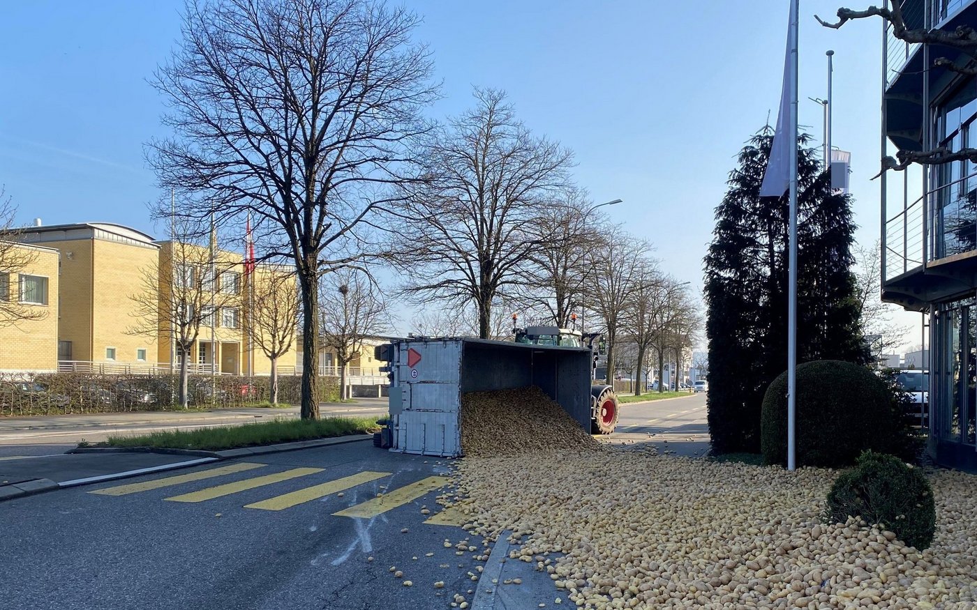 Wie die Thurgauer Kantonspolizei mitteilt, war der 28-jährige Fahrzeuglenker kurz nach 9 Uhr mit seinem Traktor und Anhänger von der Oststrasse in den Towerkreisel eingebogen. Als er der Kreisel stadtauswärts verliess, kippte der Anhänger kurz nach der Ausfahrt Zürcherstrasse auf die rechte Seite und verlor die geladenen Karfoffeln.