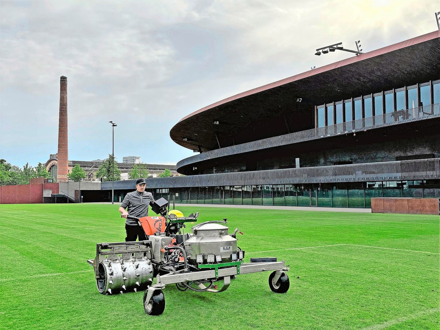 Für einmal musste Thomas Zgraggen mit seinem modernen Spezialgerät keine Steine umfahren. Bei diesem speziellen Einsatz mitten in der Stadt Zürich bestand auch keine Gefahr, wegen steilen Geländes auszurutschen, denn die zu behandelnde Fläche auf dem stark frequentierten Sportplatz war topfeben. «Es war für mich schon auch ungewohnt. Sonst bin ich mit unserer Spezialmaschine meist in steilen Hängen im Berggebiet unterwegs, bei diesem Einsatz musste ich einfach darauf achten, schön geradeaus zu fahren», so der Urner Jungbauer gegenüber der BauernZeitung.