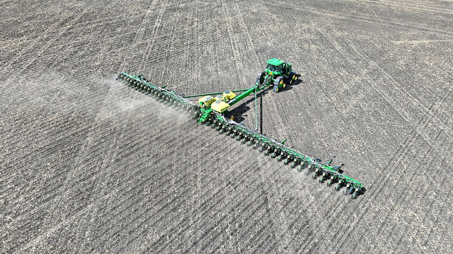 Das Einzige, was man noch machen könnte, wäre die Flüssigdünger-Ausbringung zur selben Zeit. John Deere bietet einen 8RX410 mit 4000-Liter-Flüssigdüngertanks an, was über kurz oder lang auf dieser Farm Einzug halten wird. Dann könnte man die ganze Aussaat in einem Feldübergang machen.