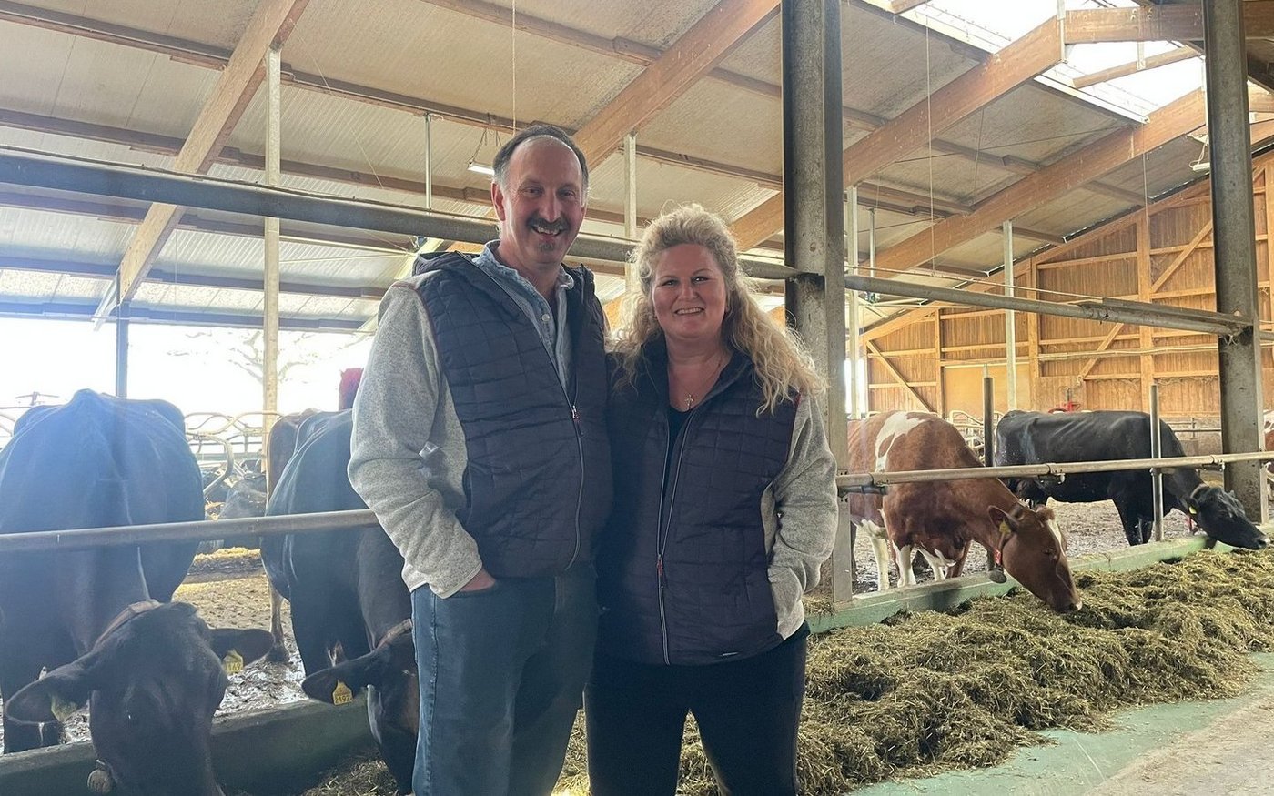 «Ich melke seit 2015 mit Lely», sagt Stefan Kopp. Der Landwirt führt einen Betrieb mit 65 Milchkühen und Aufzucht; die Herde besteht aus Braunvieh, Holstein und Red Holstein. Den Hof übernahm er 2004 von seinem Vater. Heute bewirtschaften Stefan, seine Partnerin Jasmin und sein Vater Edwin ihn gemeinsam.