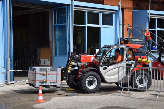 - Geschicklichkeitsparcours mit einem Manitou-Hoflader. Die Kandidaten transportieren eine Kiste mit 600 Litern Wasser durch einen Hindernisparcours. Dabei geht es um die Sicherheit, die Zeit und möglichst wenig Wasserverlust.