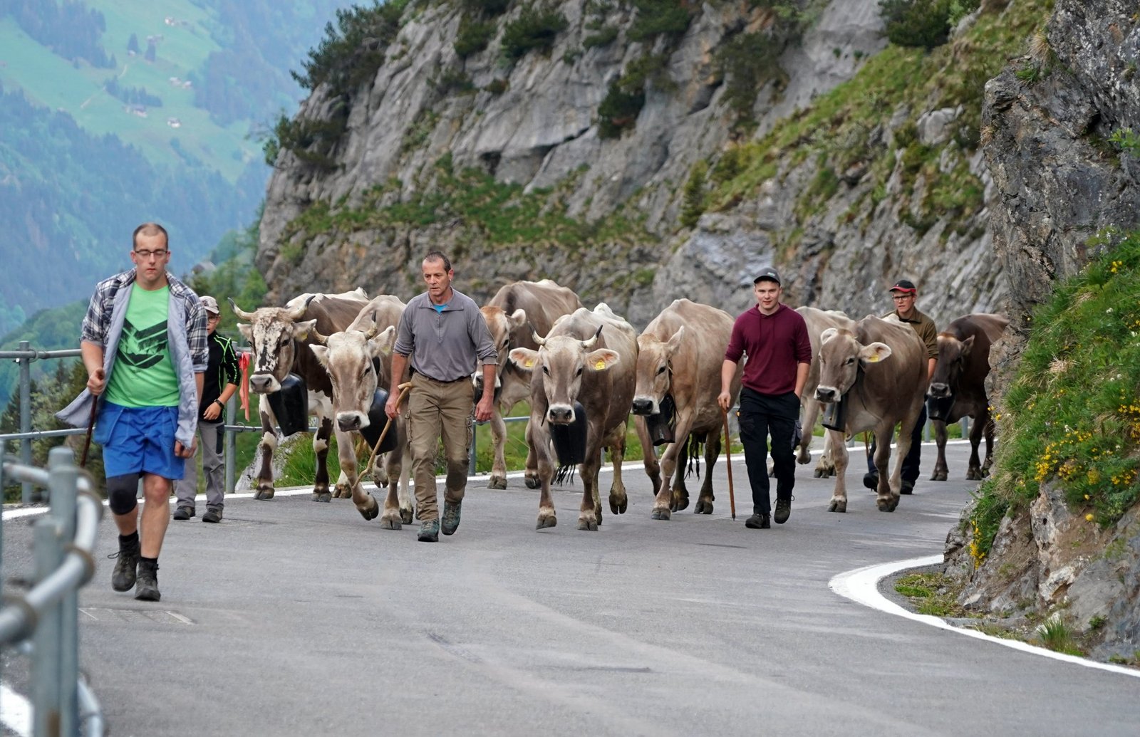 Also am Samstag 30. Mai 2020 bei Tagesanbruch noch bei heiterem Himmel setzten sich die ersten Sennten Richtung Klausenpass in Bewegung. Die meisten Kühe trugen eine «Fahrtreichel oder Bisse», was sich in einem mystischen Sound wiederhallend von den Felswänden äusserte.
