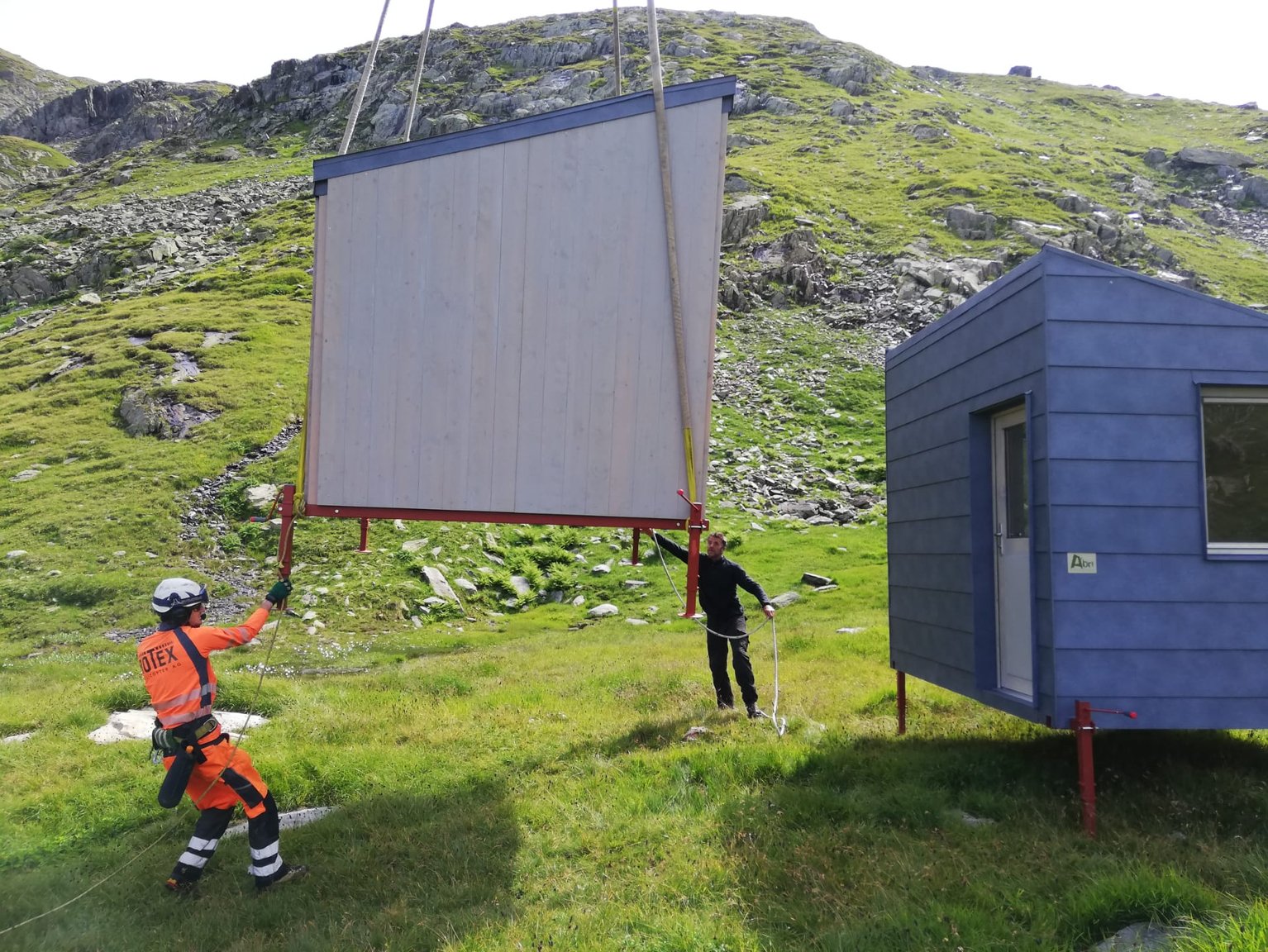 Der Vorteil an der Lana-Hütte ist, dass sie sowohl mobil wie auch permanent einsetzbar ist. Die mobile Leicht-Variante kann mit einem kleineren Helikopter, der Lasten bis 850 Kilo transportieren kann, auf die Alp geflogen und temporär aufgestellt werden. Sie kann somit auch während des Alp-Sommers verschoben werden. Unebener Boden wird mittels Kurbeln - ähnlich dem Konzept bei Wohnwagen - ausgeglichen.